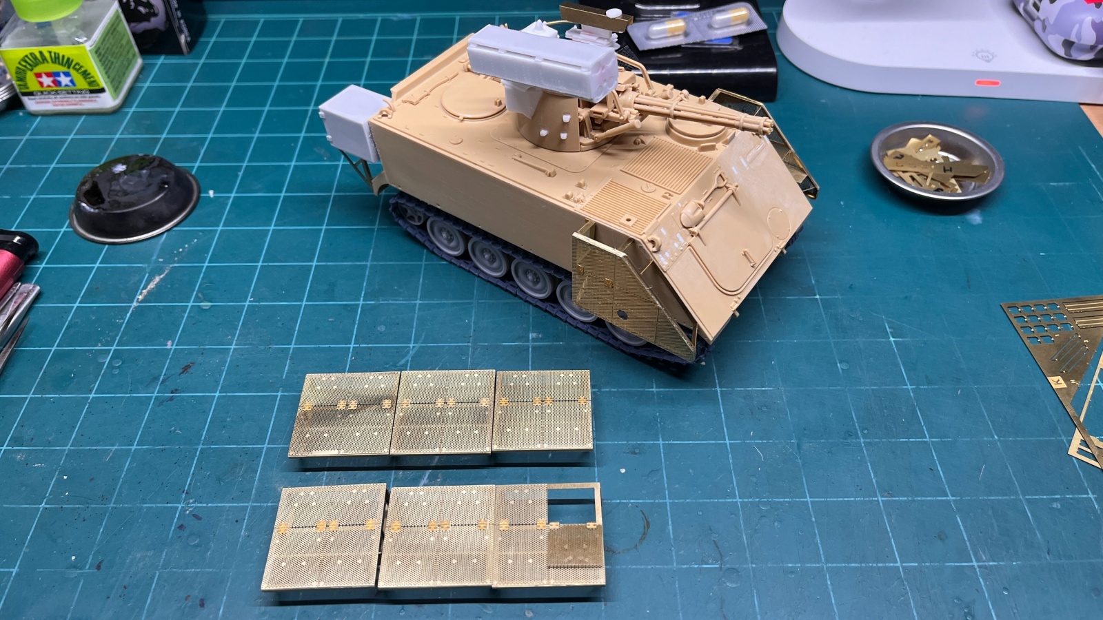 작년에 Legend Production에서 이스라엘군 M113 Zelda에 장착되어 있는 Toga장갑을 정밀한 구조의 에칭제품으로 발매해서 국내에 풀리자마자 구입했는데, 곧이어 아카데미과학의 합정동 신사옥 오픈기념의 모형전시회에서 2024년도 하비페어에 한정판매로 판매할 제품들이 소개되었고 그중에 아카데미과학의 Zelda에 에칭제 Toga 장갑을 포함한 현장 한정판매제품이 등장했더군요!! 조금 기다렸다가 그 제품을 구입할걸 그랬다는 후회도 들었지만, 어쨌든 생각해놓은 키트들은 대부분 구입해놓았으니 적어도 하비페어 전에 완성시켜서 그때 동호회부스에 출품이라도 해야겠다는 생각이 들어서 작업을 시작했습니다. 최근까지 만들었던 M2A0 Bradley처럼 인테리어를 만드는 것이 아니다보니 작업진도도 무척 빨라서 좋았습니다.