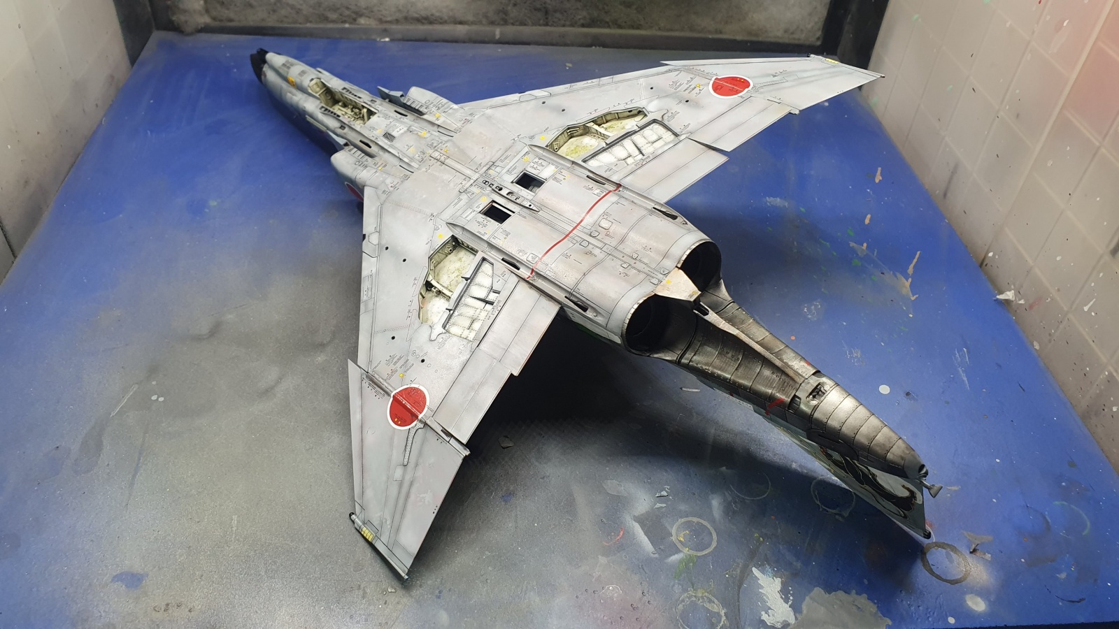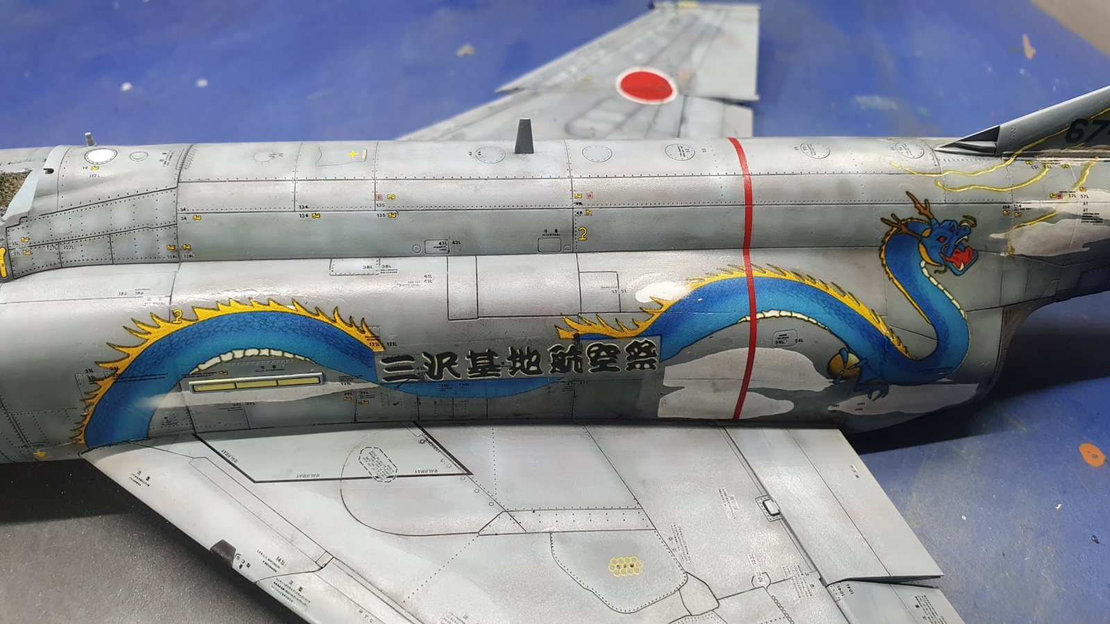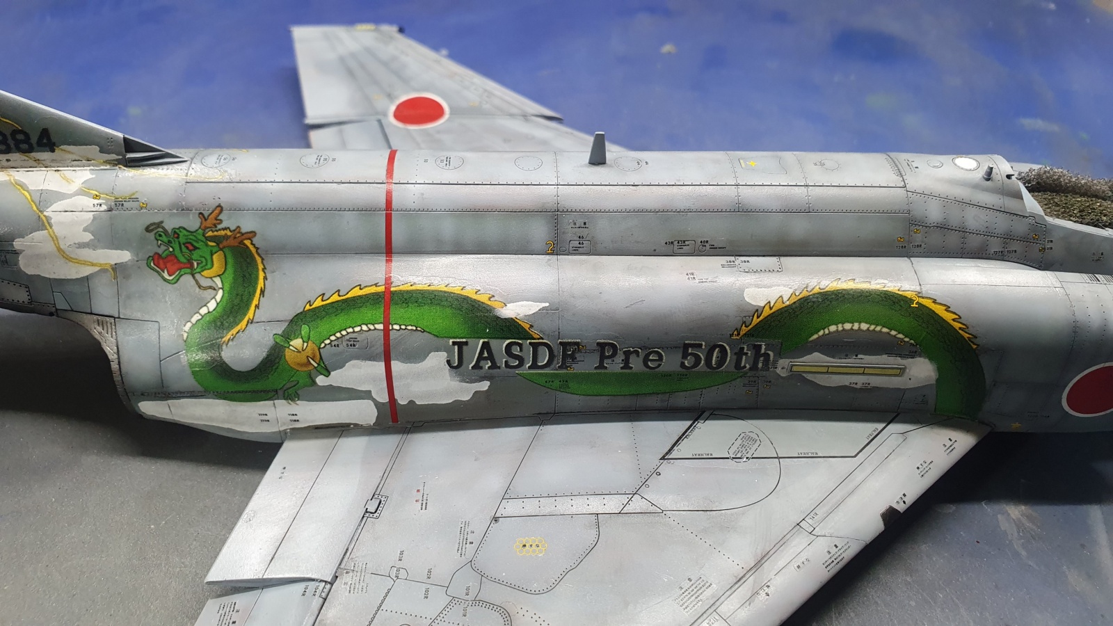 주익 상면의 라운델은 키트에 들어있는 데칼이 주익상면 전체를 덮는 스페셜 마킹 한장으로 인쇄되어서 흰색 테두리는 마스킹, 적색원은 키트의 데칼을 오려서 붙여주었습니다.
