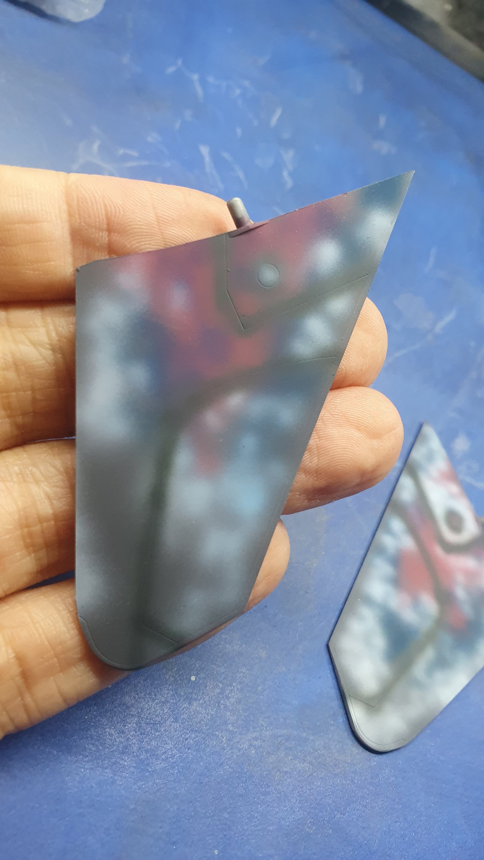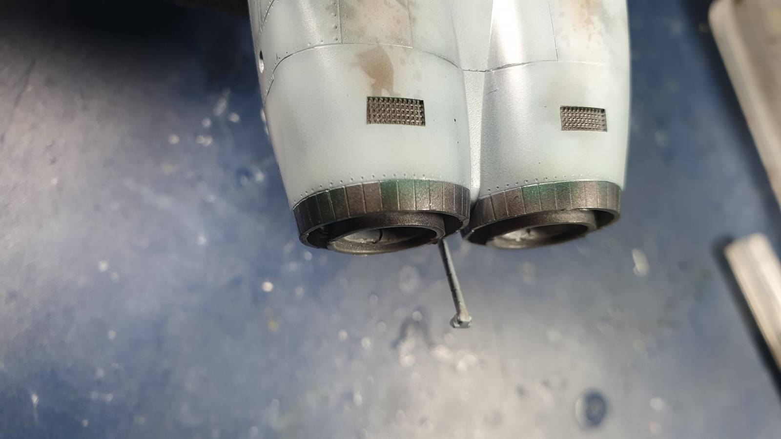 노즐을 칠하고 밑색을 깔아주었습니다, 노즐은 추후에 조금 더 작업해 줄 생각입니다. 키트의 노즐도 꽤 괜찮습니다 노즐 안쪽은 흰색의 패널중 몇몇 패널이 검게 변색된 기체들이 있어 표현해 봤습니다.