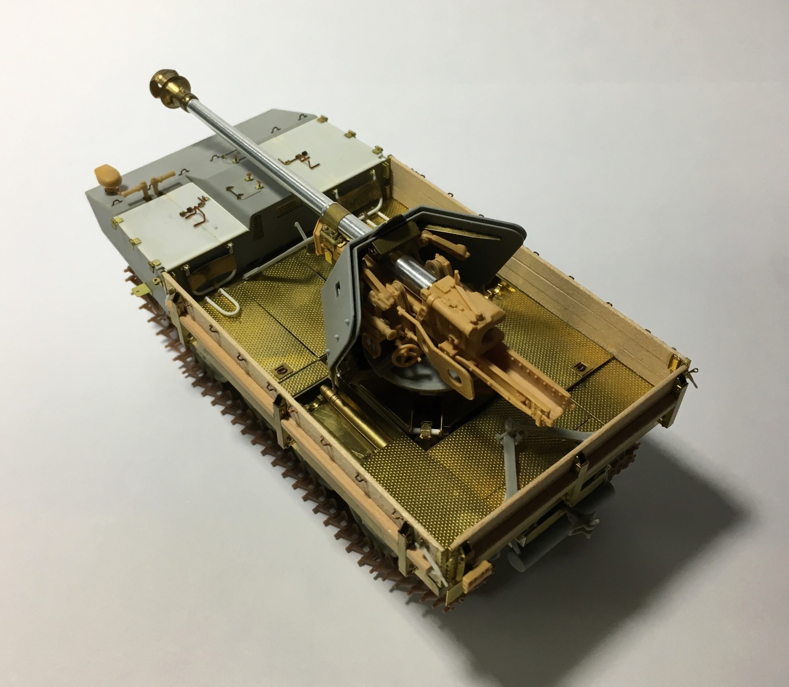 RSO 차체 프레임 위에 Gun mount가 얹혀지는 형태로써, 인젝션 부품에 비해 디테일이 월등한 에칭 부품을 사용했습니다.