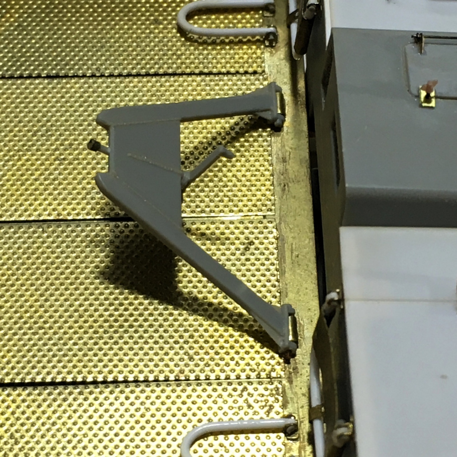 후면에 간이 의자(?)는 0.8mm 프라봉 끝 부분을 누른 다음 핀바이스를 이용해서 구멍을 뚫어 가동이 가능하게 제작하고 에칭 부품으로 디테일업 해주었습니다.