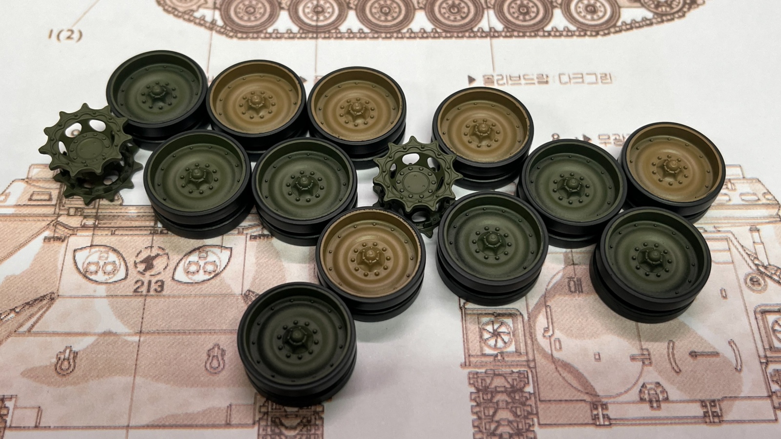 구동계는 티슈를 말아서 끼워넣고 도장가이드를 참고해서 4색 위장무늬를 잘 그려주었습니다.
