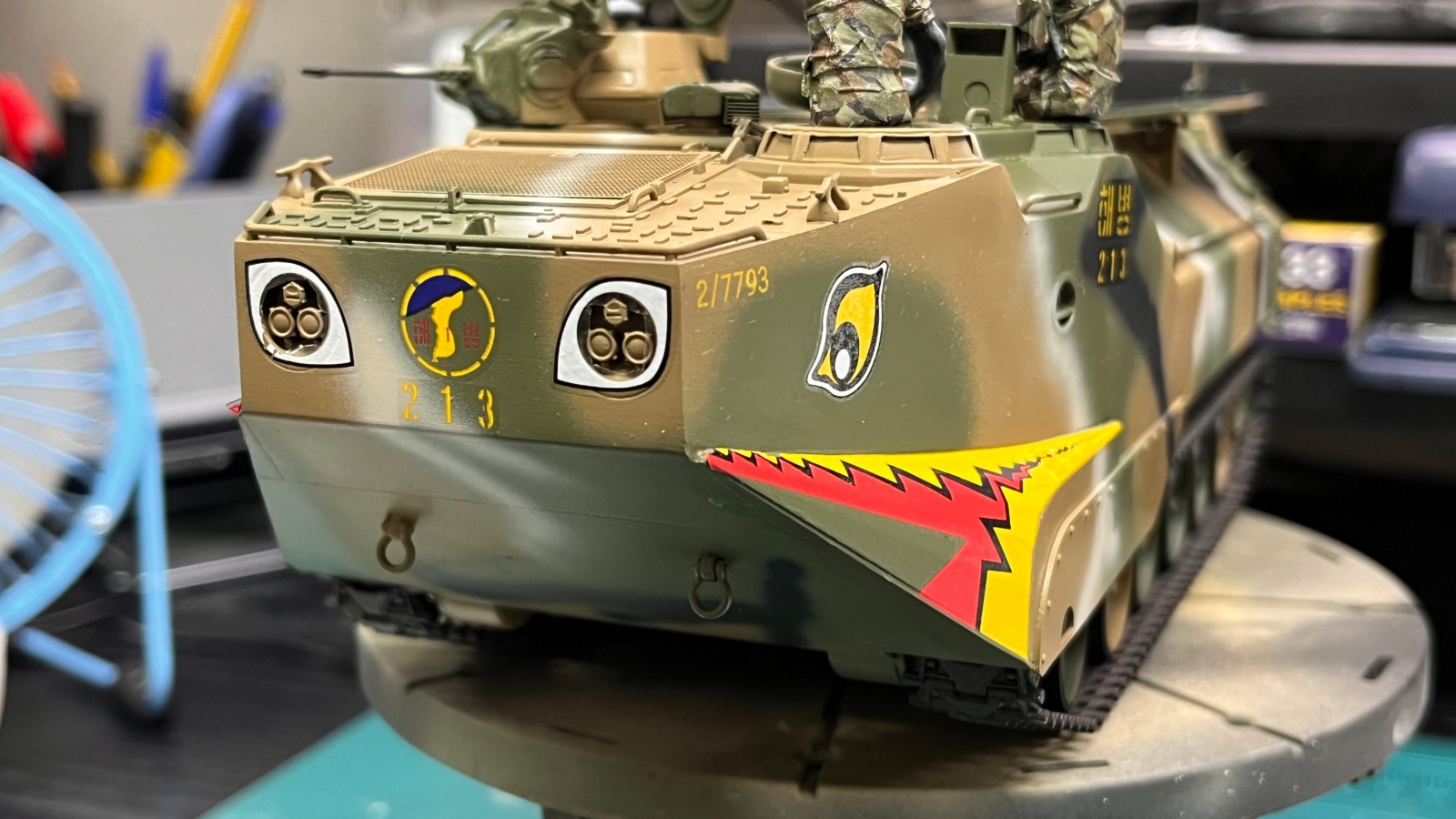 아카데미과학에서 90년대 초반에 발매했던 차량의 번호를 그대로 베꼈습니다. 저 213번은 해병1사단 상장대대 2중대 1소대 3번 차량을 의미한다고 합니다. 거꾸로 아카데미과학의 설명서를 보니 1984년 국군의 날 행사에 사용된 차량의 번호를 제품화했다고 합니다.
