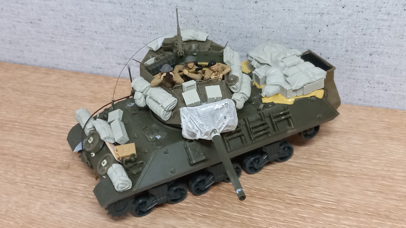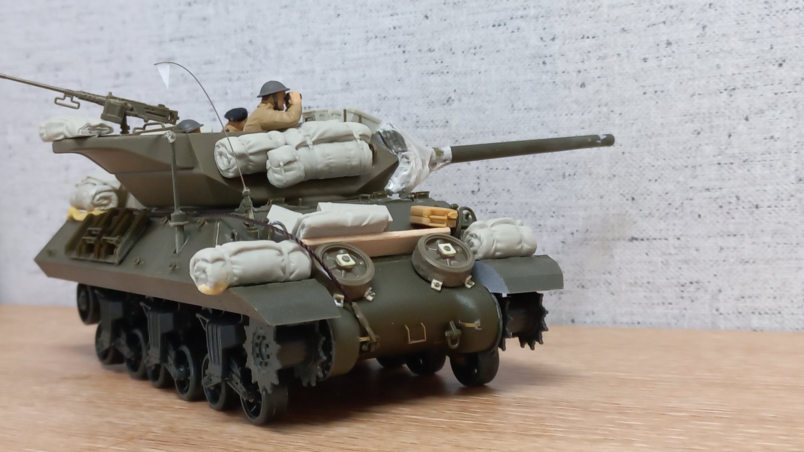 아카데미 1/35 울버린(노르망디 상륙작전 70주년 기념판) 차체 + 이탈레리 VVSS 현수장치 + 타미야 아킬레스 포탑 + 브롱코 17파운더 운용병 + 레전드 프로덕션 M10 울버린 악세서리 + AFV 클럽 영국군 연료통 세트 + 이탈레리 미해병대 셔먼의 DD 스노켈이 사용되었습니다. 이제 AFV 클럽 제 T48 궤도도 조립해서 달아줘야 합니다. 그리고 그건 그렇고 아카데미 울버린/잭슨은... 음... ㅎㅎ... 울버린 포탑 문제는 익히 알고 있었지만... 일단 제가 발견한 단점만 해도...
