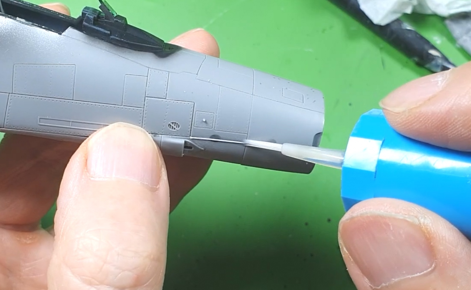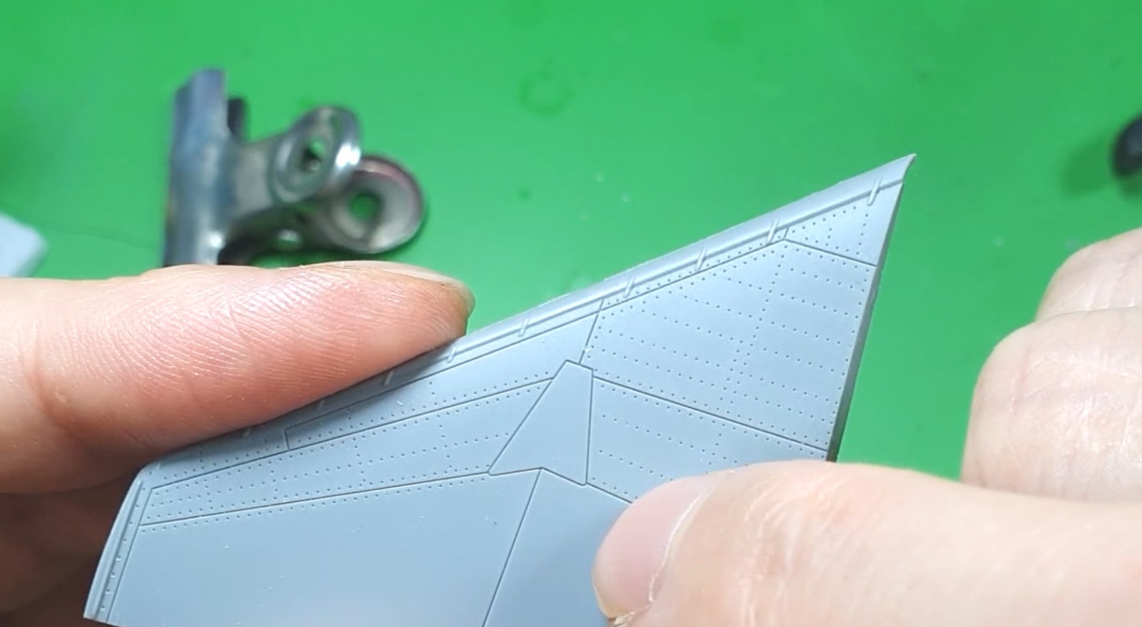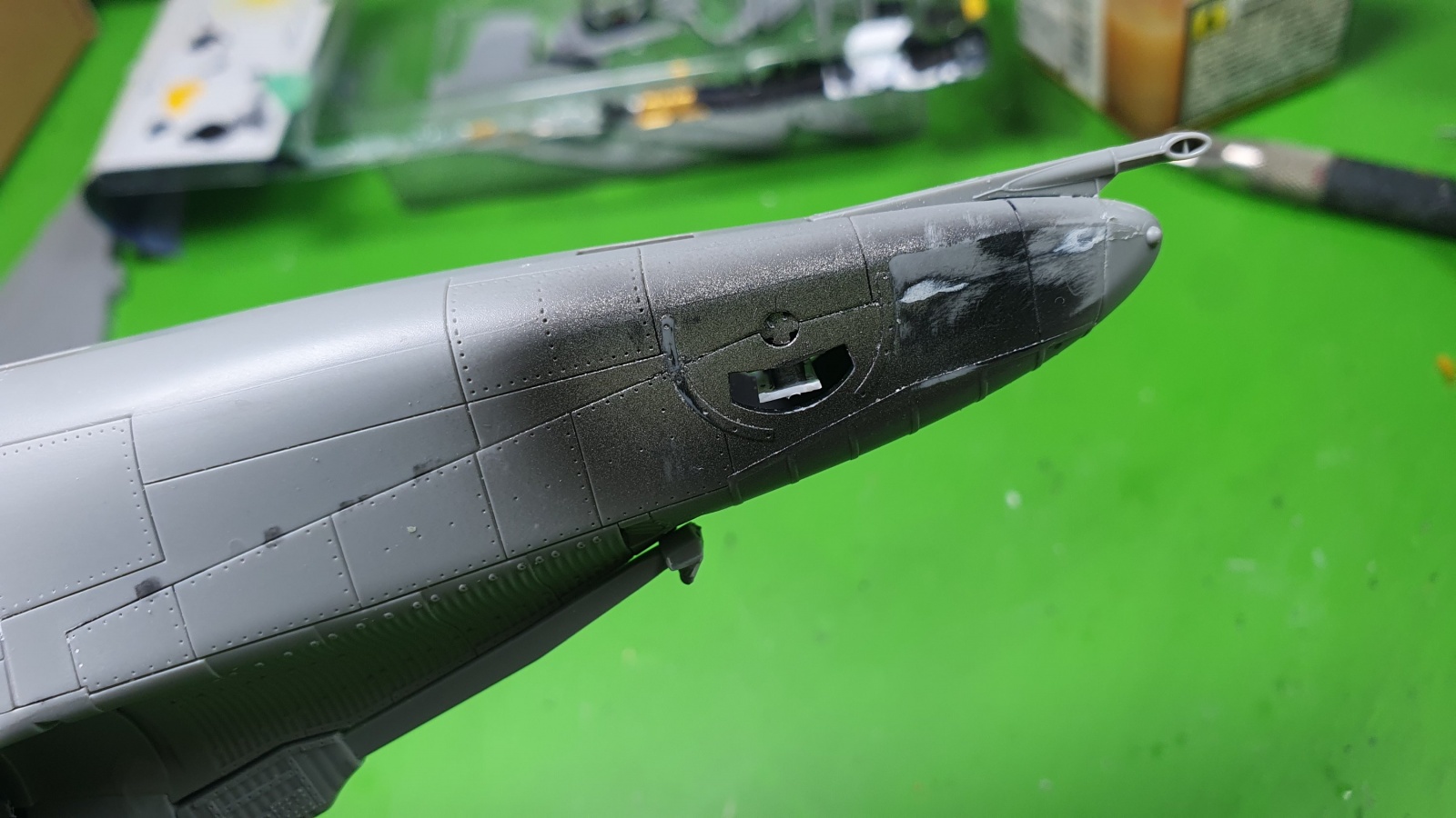 이 보강판도...볼록하게 양각으로 표현되어야 하는데 시원하게 몰드로만 파놨습니다, 제가 만드려는 이란공군 기체는 아직 이 보강판이 붙기 전이라 메꾸고 패널라인을 다시 파고 리벳도 다시 찍어주는 귀찮은 일을 해야만 했습니다.