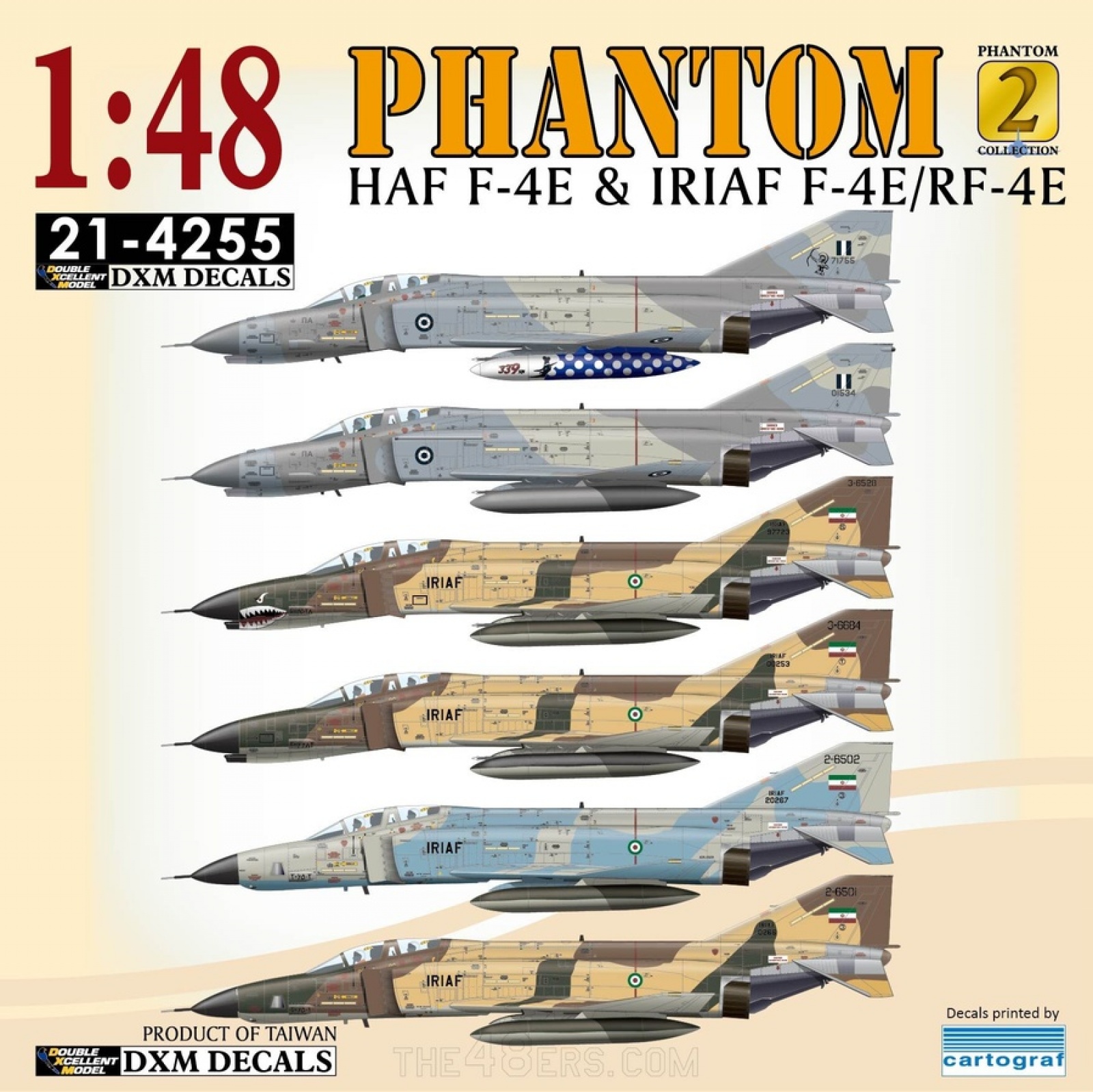 안녕하세요 7편입니다 데칼은 DXM데칼을 사용했습니다 이란/그리스 공군 두가지 국가의 F-4E/RF-4E를 재현할 수 있고 스텐실도 2기분이 들어있습니다 데칼 품질은 아주 좋습니다. 그리스공군의 경우는 AUP업데이트 사양이라 개조세트가 추가적으로 필요하긴 합니다.
