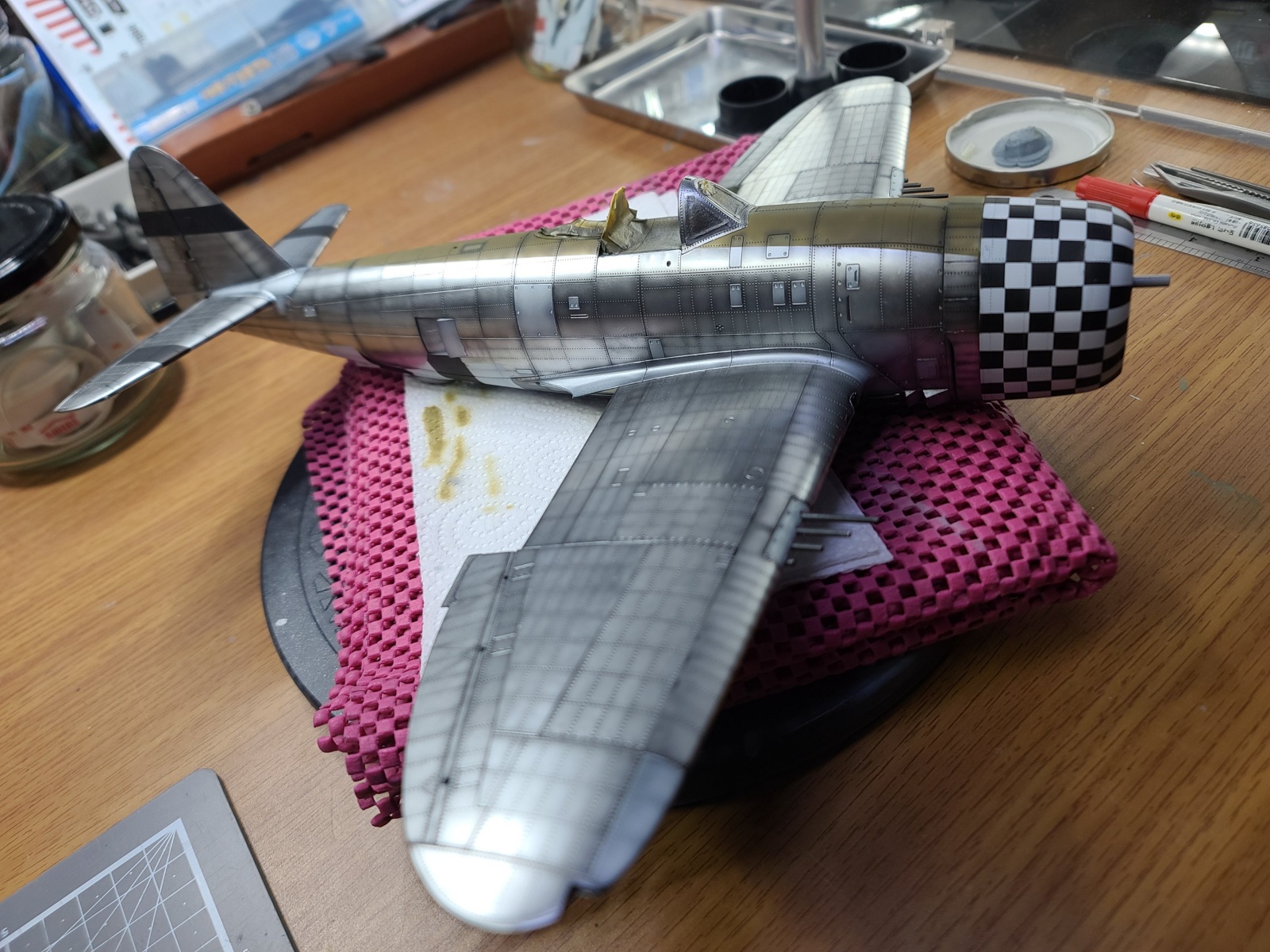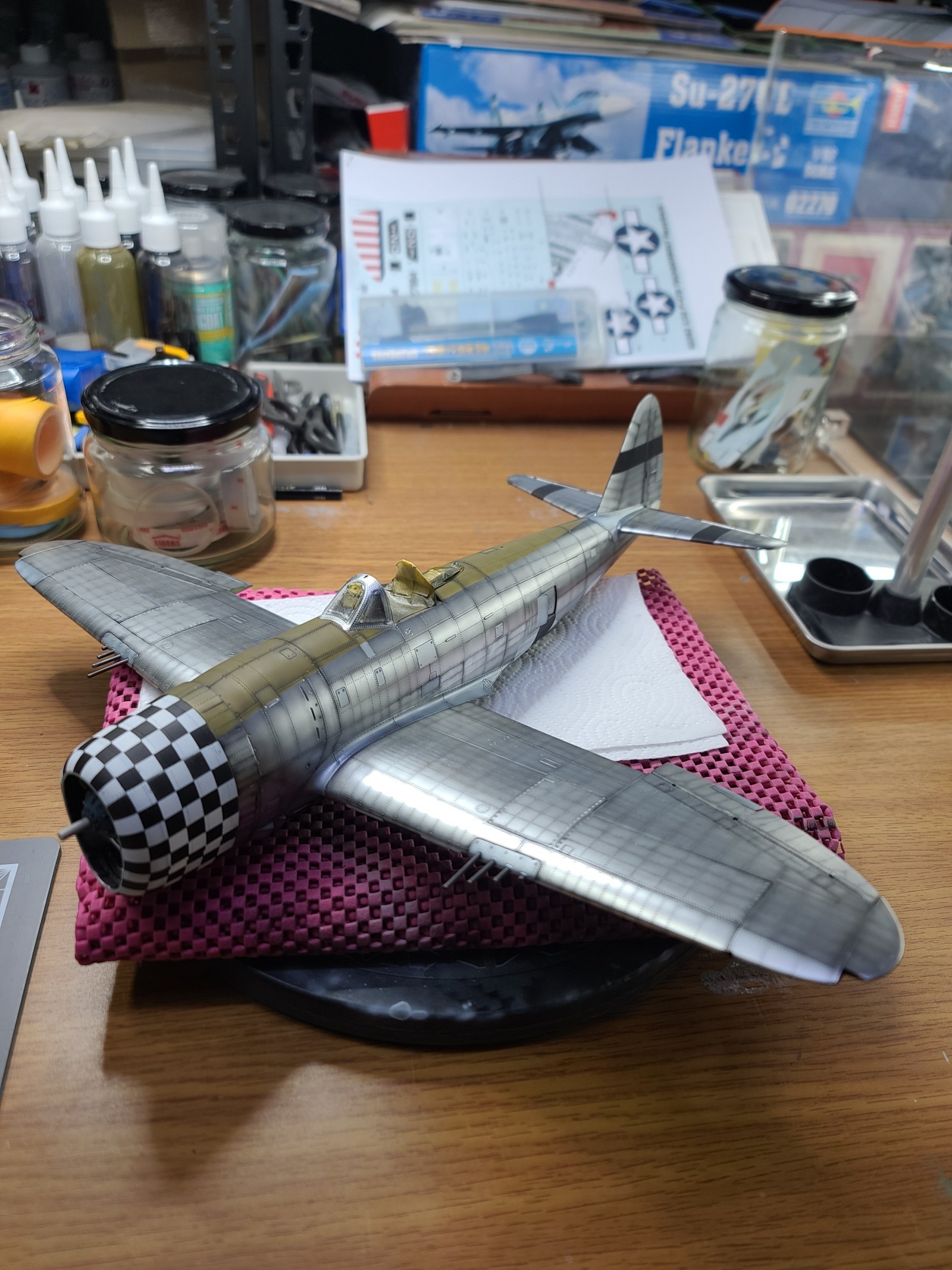 은색 기체의 도색을 공부하려고 만들어본 p-47이었습니다.