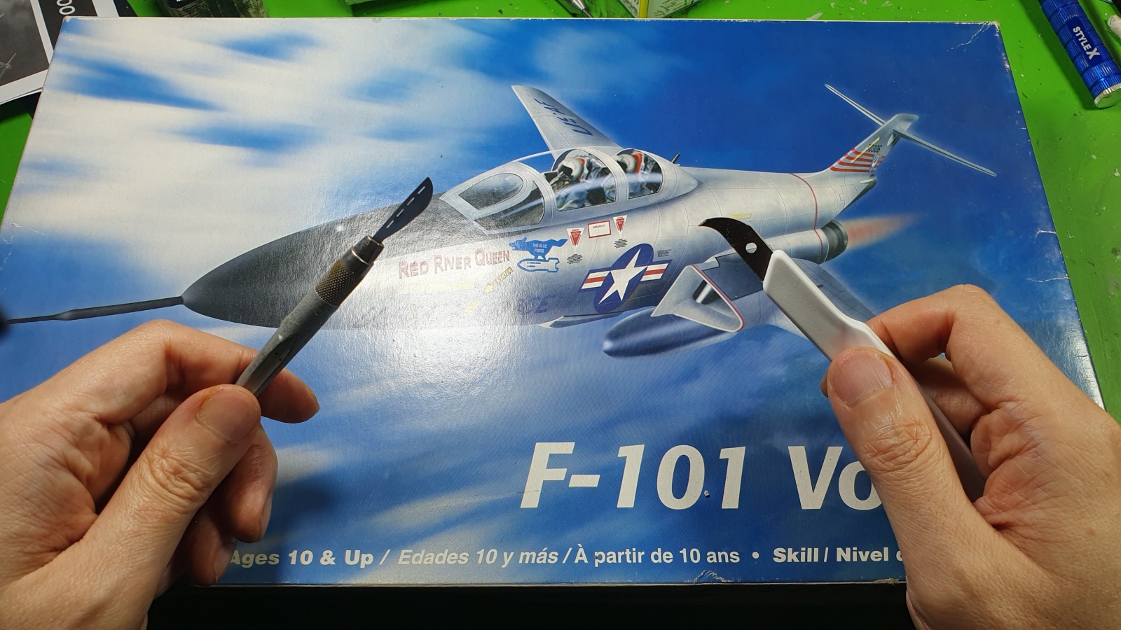 안녕하세요 모노그람의 F-101B를 시작했습니다. 전체 양각몰드라 일단 음각으로 파주고 있습니다.