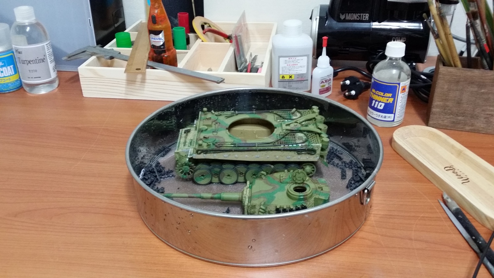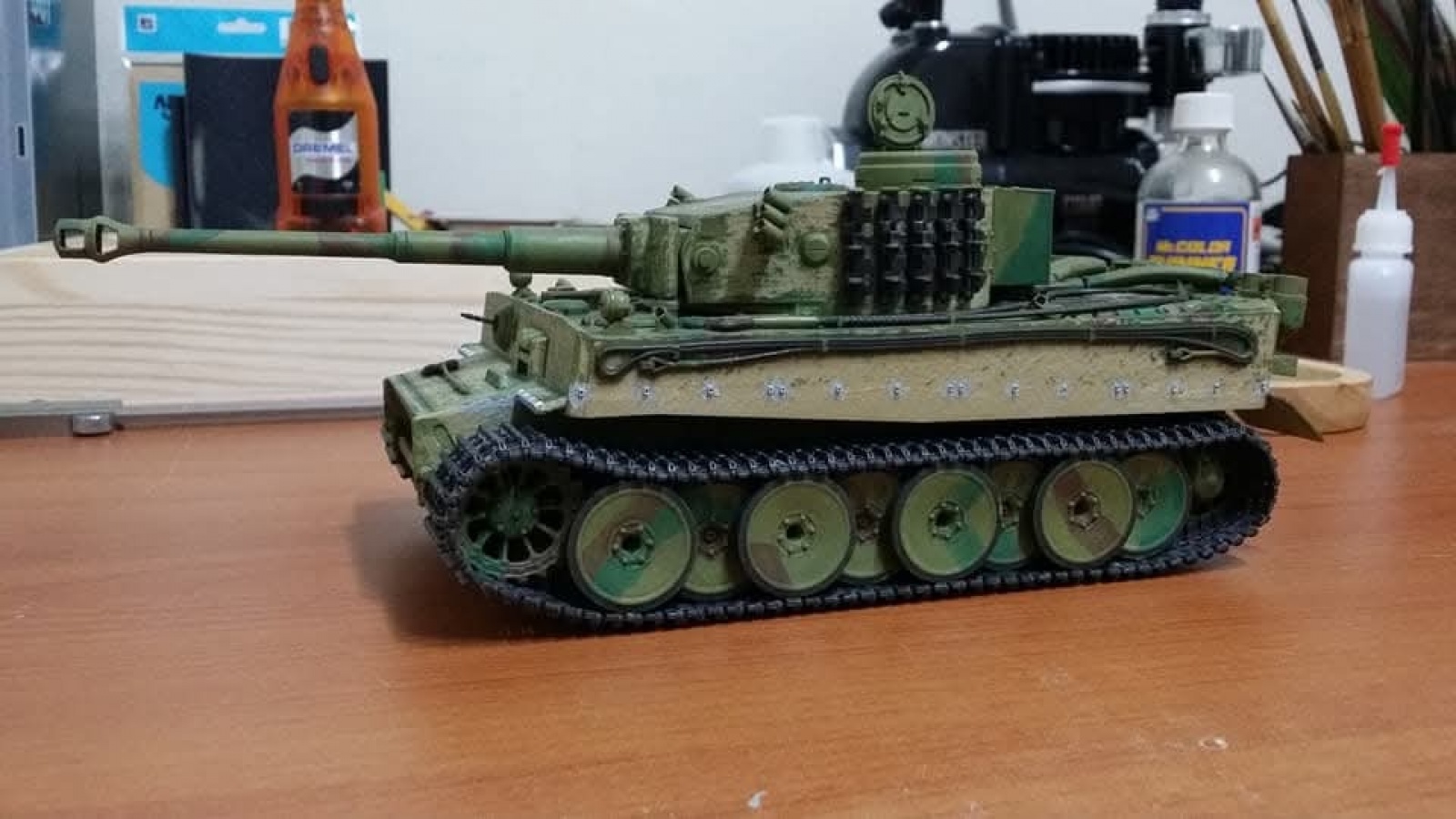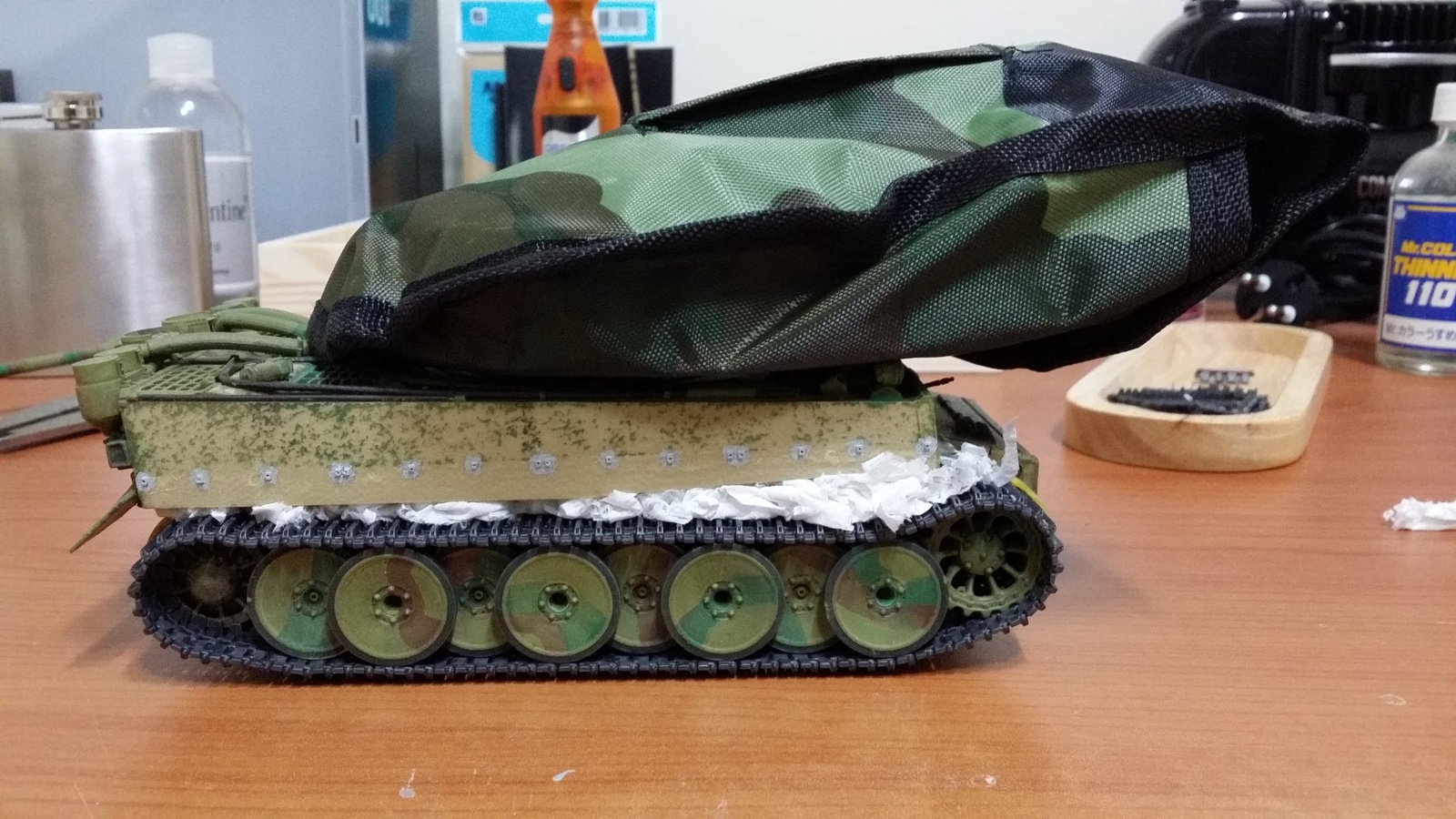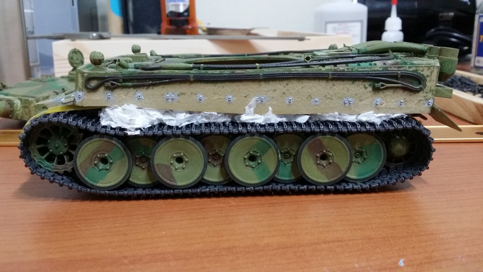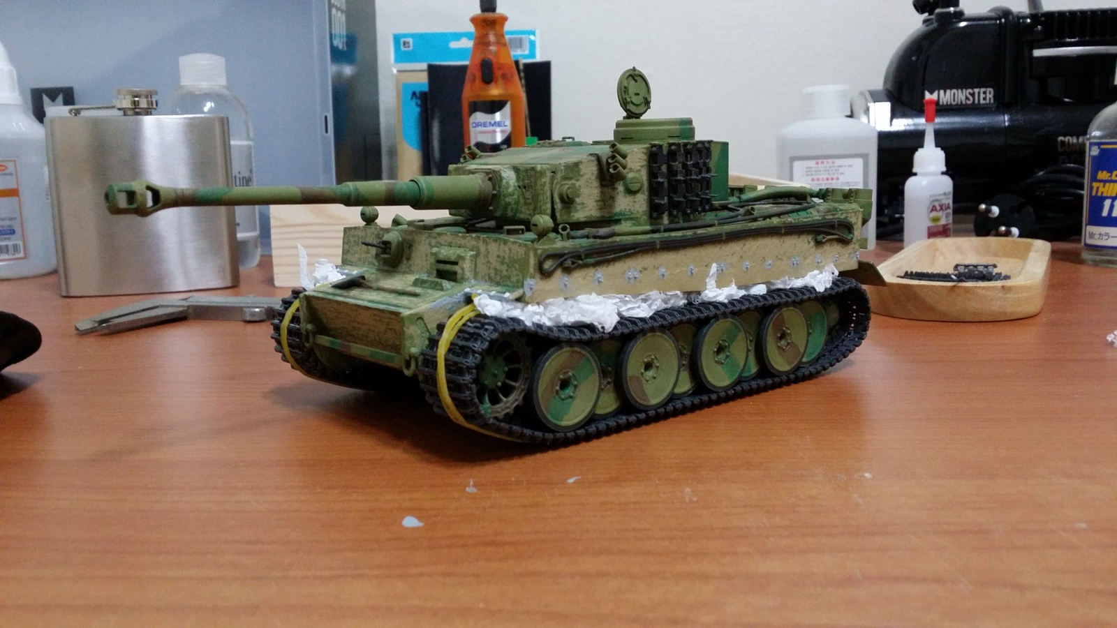 그냥 만들면 재미도 없고해서 MMZ 다른 고수분들이 하신거 따라해서 옆치마 앞치마도 뺏기고 취미가 보니 독일군 전차는 주조처럼 표면이 곰보라고 해서 드라멜로 좀 갈아 주었습니다.