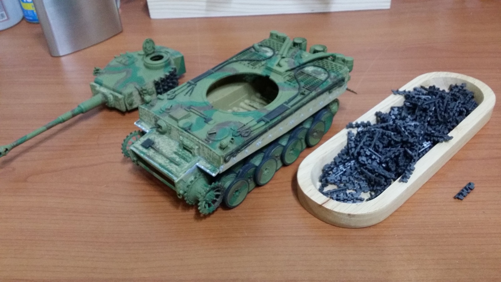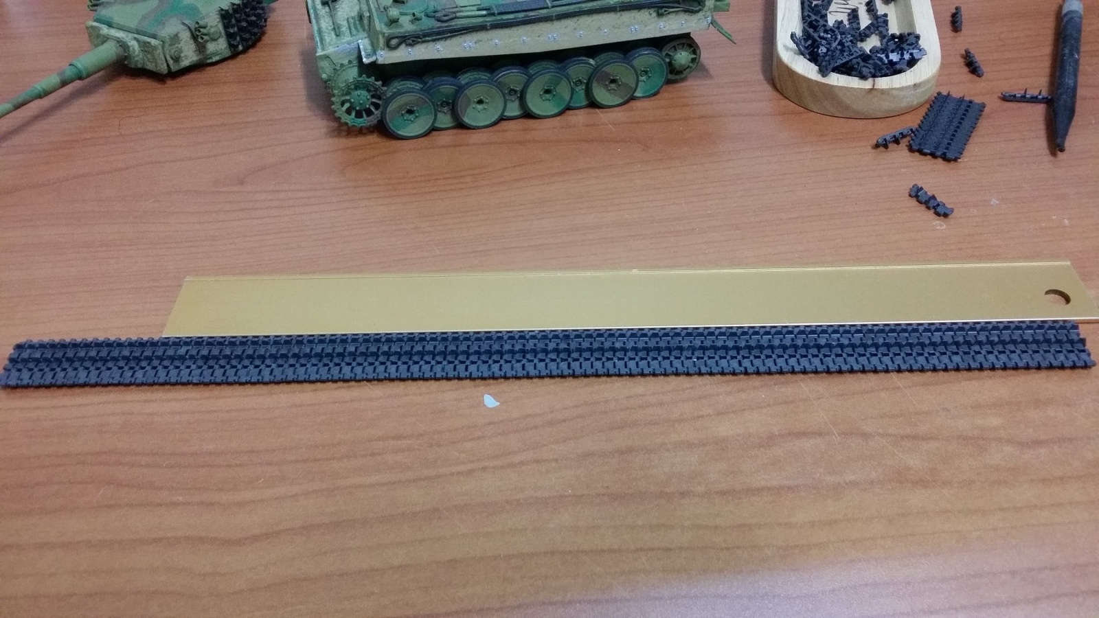 1997년 인가 98년에 모형행사에서 박스도 없이 1000원인가에 팔던 타이거 연결식 궤도를 제법 많이 사두었었습니다. 모형을 십몇년을 안만들다가 고등학교 다닐때 타미야 아크릴 물타서 도색한 아카 타이거에 신발을 갈아줘야 겠다고 생각하고 함 1000원 짜리 궤도를 만들어 보았습니다.
