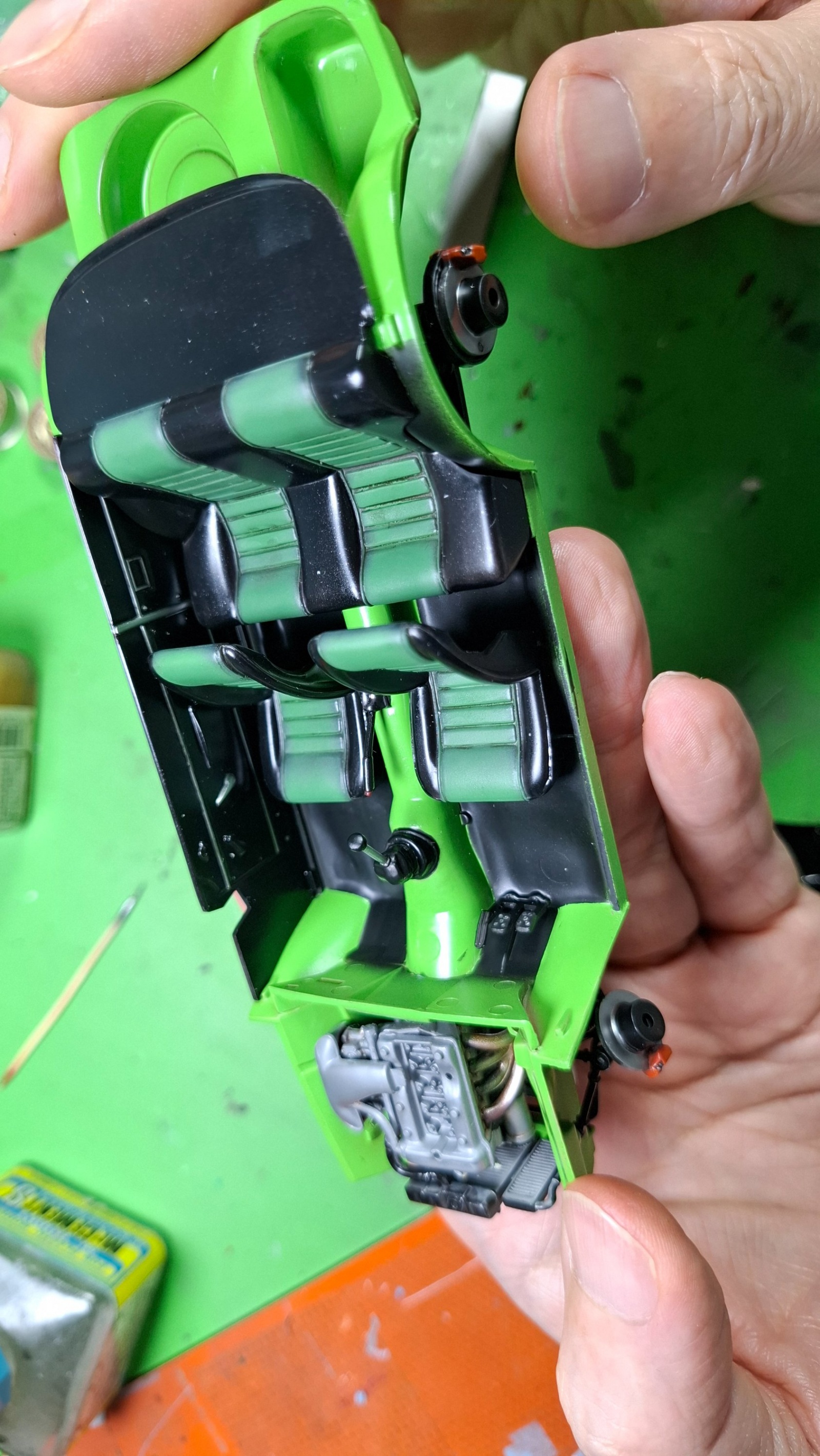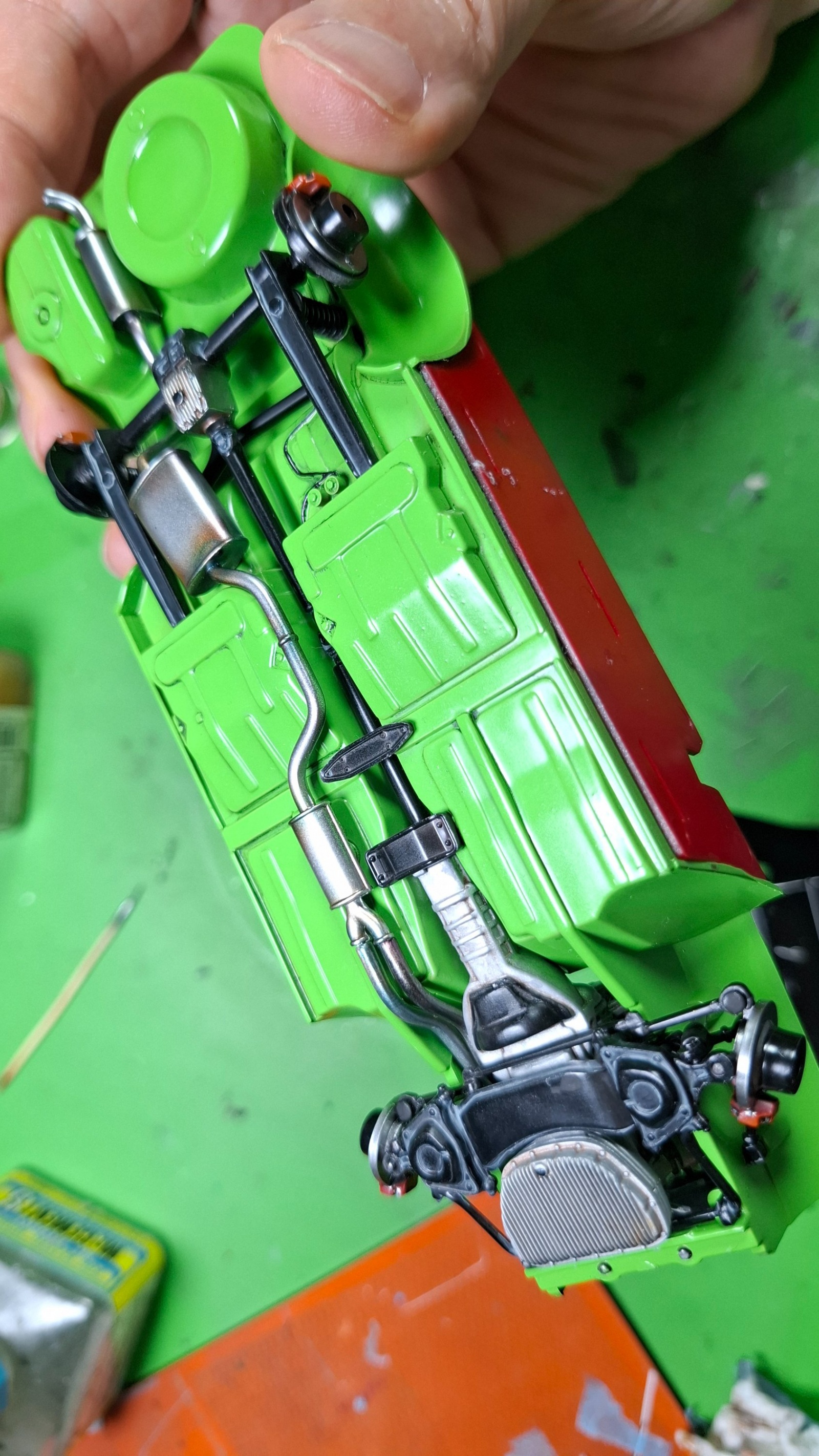 엔진같은 경우는 후드를 닫아놓을거라 엔진 하부만 도색햇습니다.