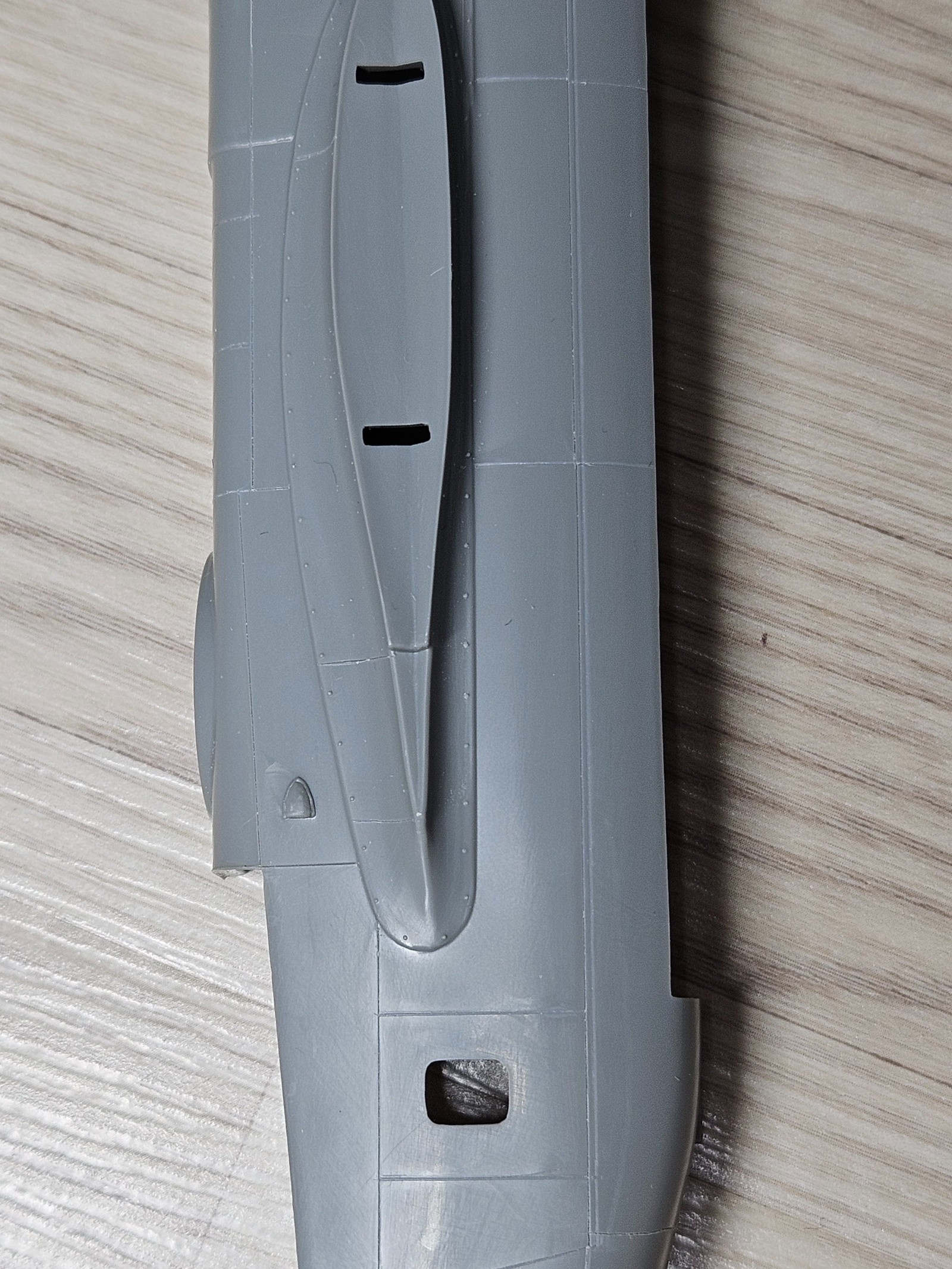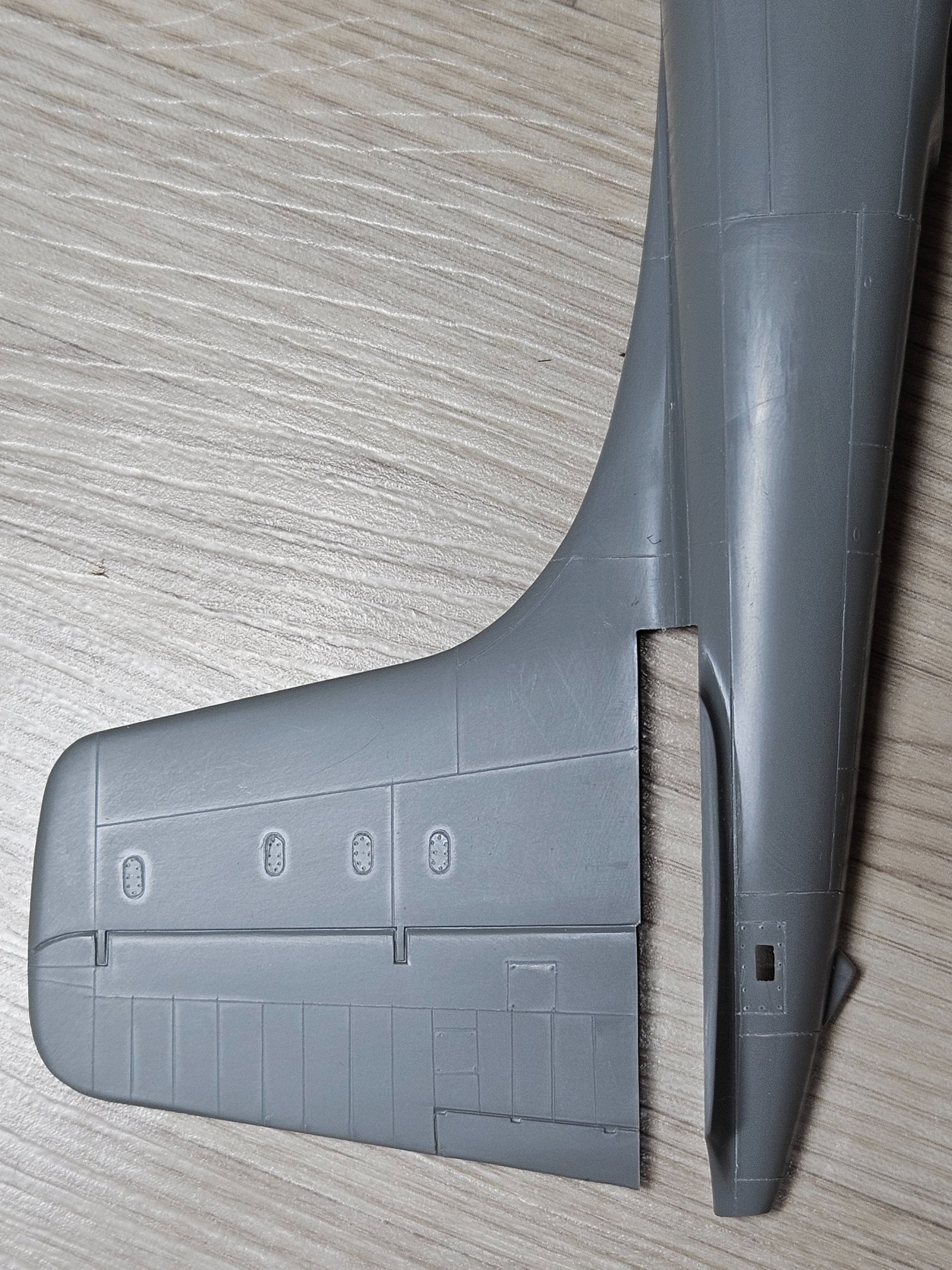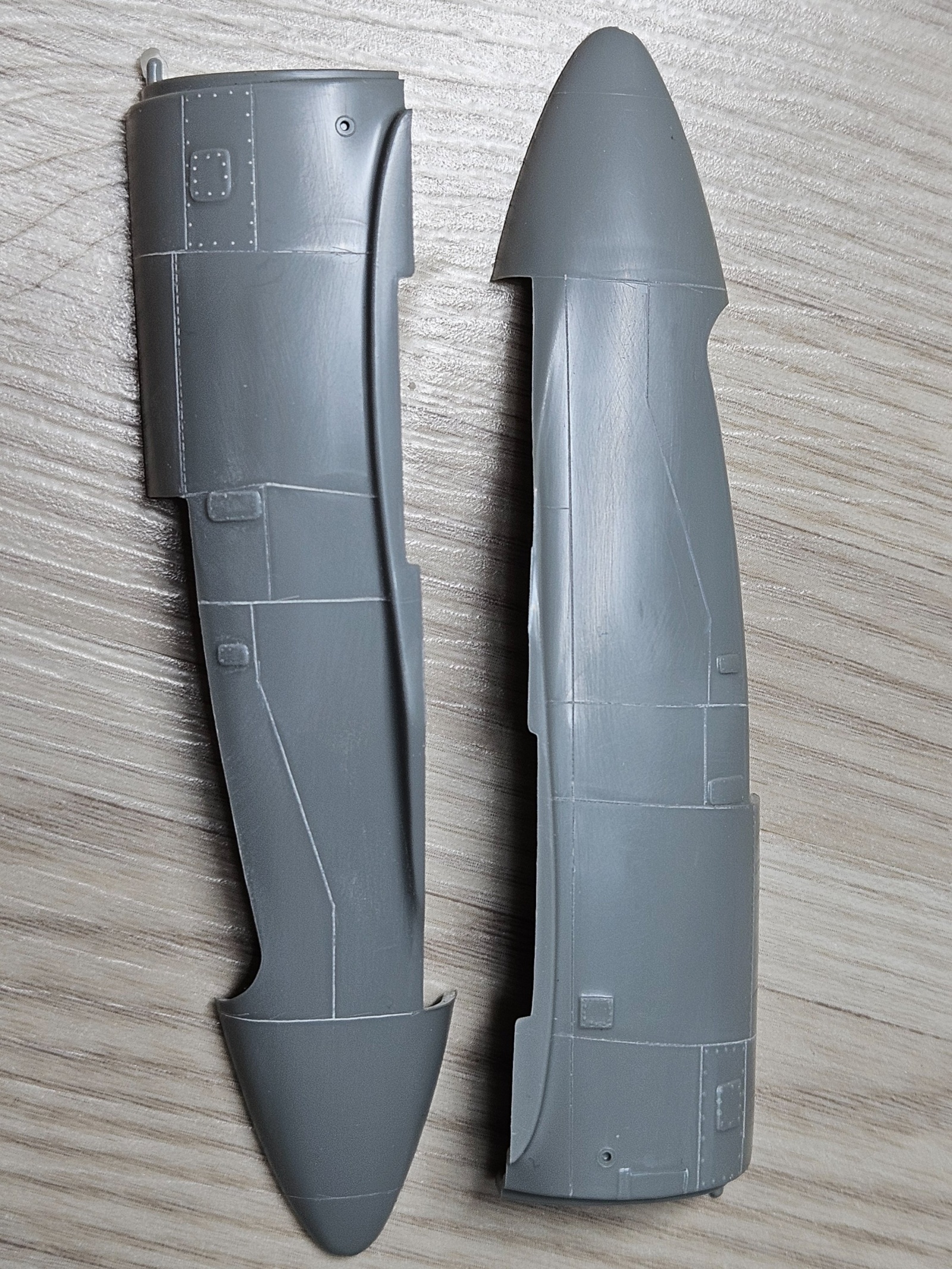 수평 꼬리날개인데 생각외로 선이 많고 가조립 해보니 동체와 틈이 많이 벌어지는 부품이었습니다. 엔진커버는 비교적 쉬운 부분이었습니다.30년전 잡지사에 투고할 모형을 만들면서 처음 파보고 두 번째 작업이라 추억이 새로웠습니다.
