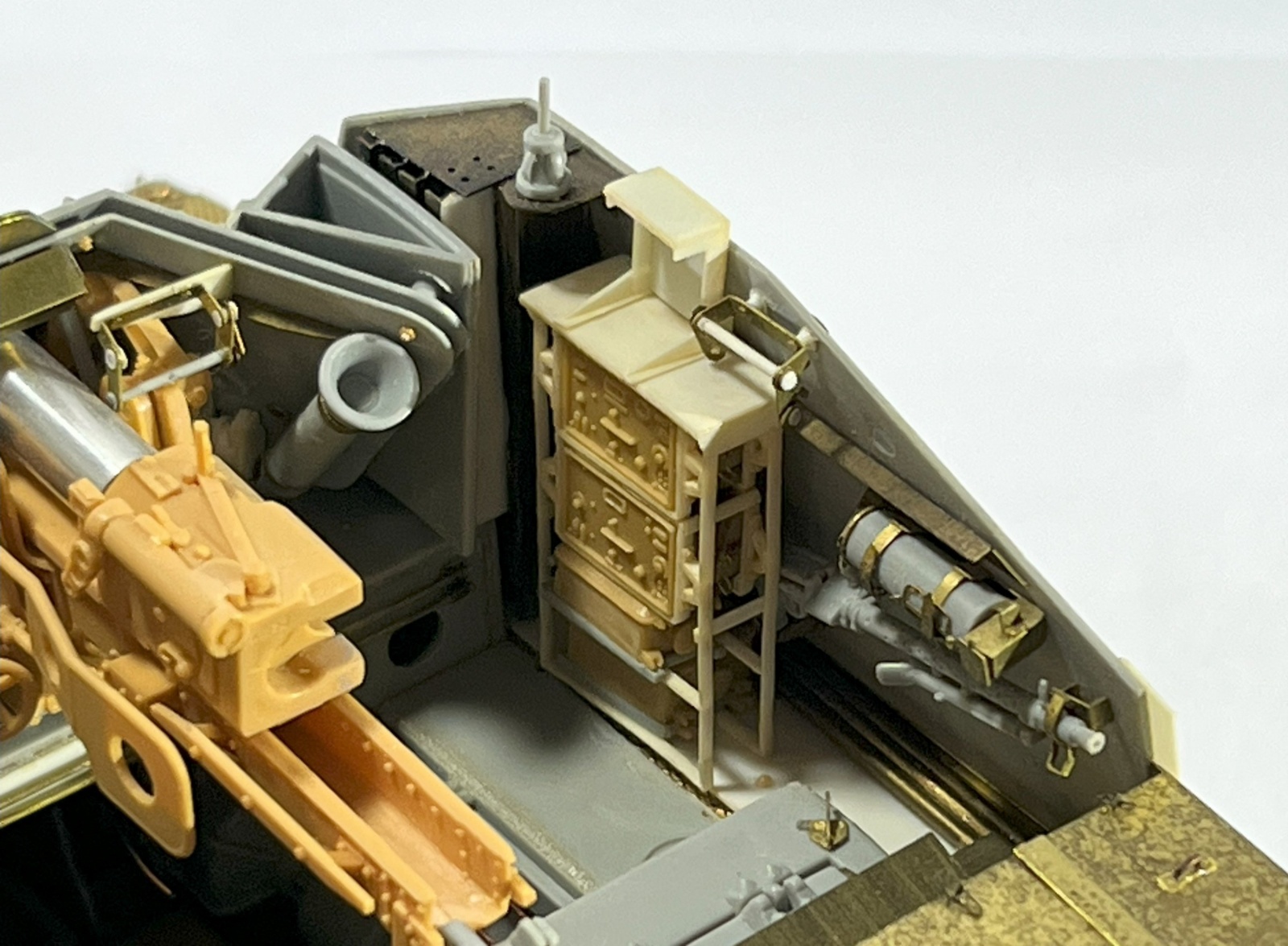 Marder III Ausf.H와 같이 이 제품을 제작하던 당시에는 아직 1120 PRODUCTION의 Fu5 / Fu16무전기 세트를 인지하지 못했던 터라 TRISTAR의 Marder III Ausf.H 제품에 포함된 인젝션 부품으로 제작했습니다. Rack은 프라판으로 제작해주었는데 시간이 꽤 지나서인지 노랗게 변색됐습니다;;;