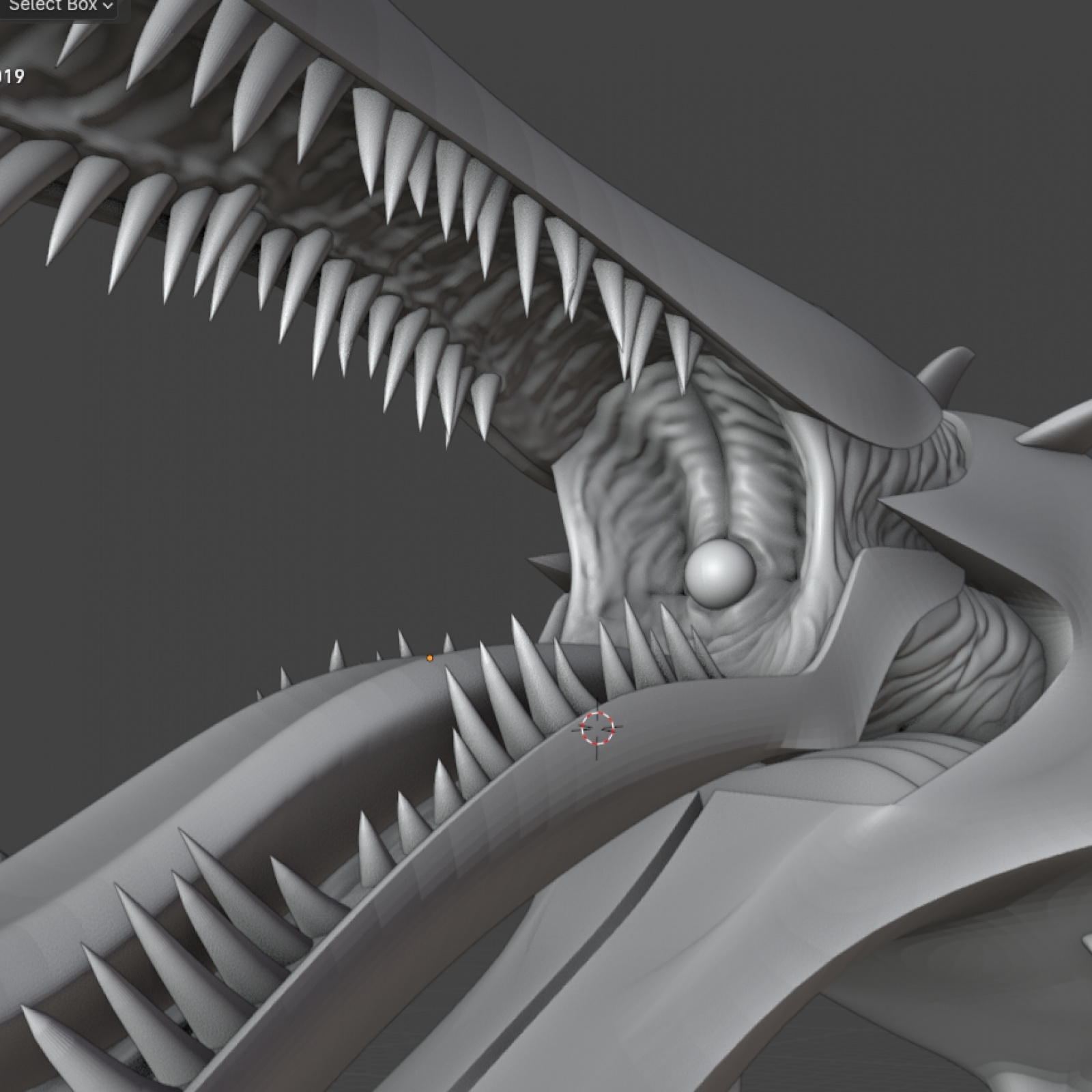 이번 작업에서 새로 배운것은 sculpting 기능입니다. 도형의 폴리곤 갯수를 매우 많이 늘린후 누르거나 팽창시켜서 유기적인 느낌을 내는것인데, 목부분, 위턱 아래턱, 잇몸, 목구멍부위의 주름형성에 많은 도움을 받았습니다. 단점은 이후 프루사슬라이서 프로그램서 파일을 고칠때 표면이 거칠어집니다. 하지만 치투슬라이서에서도 어느정도 고치는것이 가능합니다.입을 닫았을때 턱 뒷부분과 목구멍 부위는 애니에서는 그냥 검은색에 코어만 보입니다. 저는 제 상상력으로 디테일을 추가해주었는데, 이런것도 자작의 묘미가 아닌가 합니다. 이빨은 정말 시간이 오래걸렸는데, 고대 고래 화석을 바탕으로 어느정도 규칙적이지만 다 똑같은 형태는 아니게, 그러면서도 애니설정과는 많이 벗어나지 않게 배열하였습니다. 애니에서도 이빨이 1열 아니면 3열로 나오는듯 형태가 다 틀리긴 합니다.