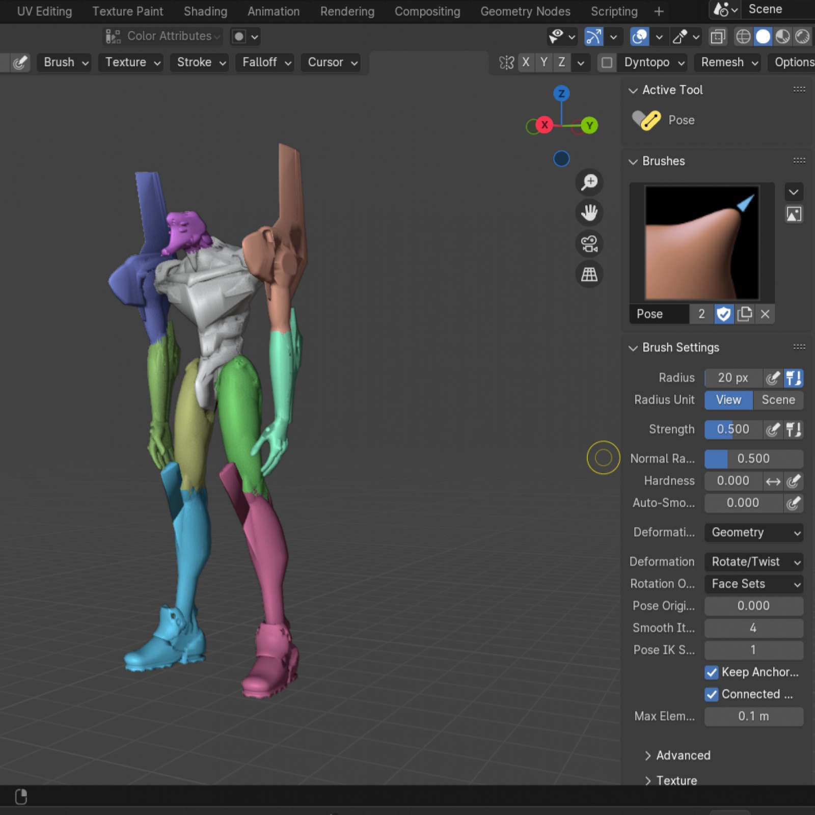 블렌더 내에서 에바 STL 파일의 관절부위를 따로 지정 후 포즈를 바꿔줄수 있습니다. 하지만 큰 움직임을 하기엔 조금 어렵긴 합니다.
