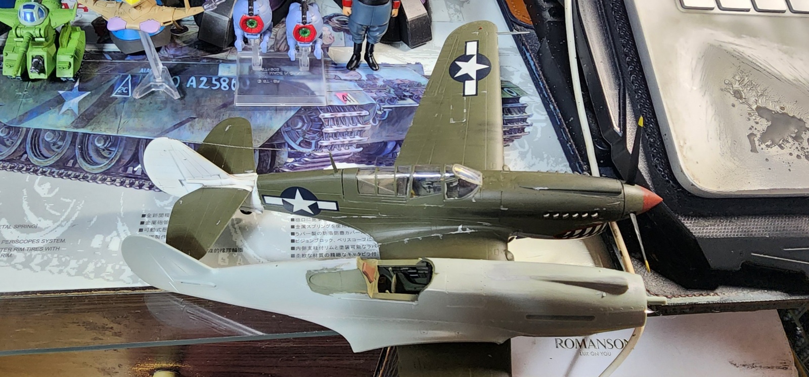 내친김에 과거 만들었던 AMT의 1/48 P-40N을 꺼내서 비교해보았습니다. 미니크래프트 토마호크는 기존 P-40과 비교는 못해봤다만 이 토마호크 IIb 키트를 기준으로 도면 자료들과 비교해보면 다른건 다 좋은데 기수가 조금 길더군요. 신경 쓰일 정도는 아닌데 이렇게 P-40N을 비롯해 기체가 기존보다 길어지고 기수 형상이 커진 후기 P-40들과 비교해보면 길이 차이는 안느껴지는 단점이 있습니다.