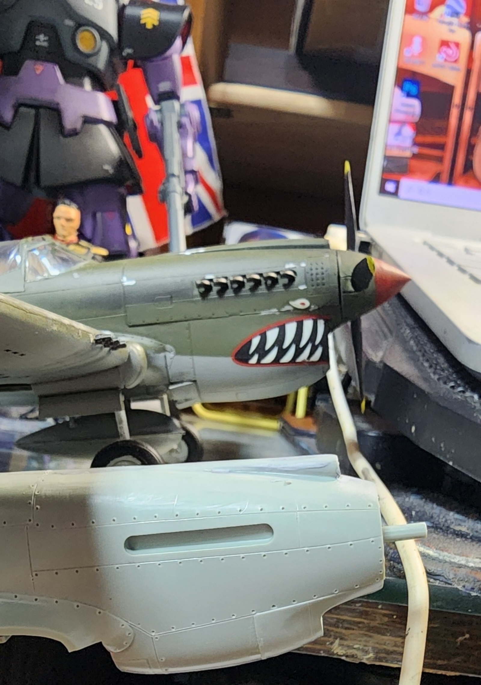 그런데 그렇다고 형상을 크게 뭉게뜨리는것도 아니다보니 그냥 넘겨도 상관 없을 것 같네요. 에어픽스 P-40C의 경우 완성 작례 사진들을 보면 기수가 도면대로 미니크래프트보다 짧아보이던데 직접 만져보질 못해서 정확하게는 잘 모르겠습니다...