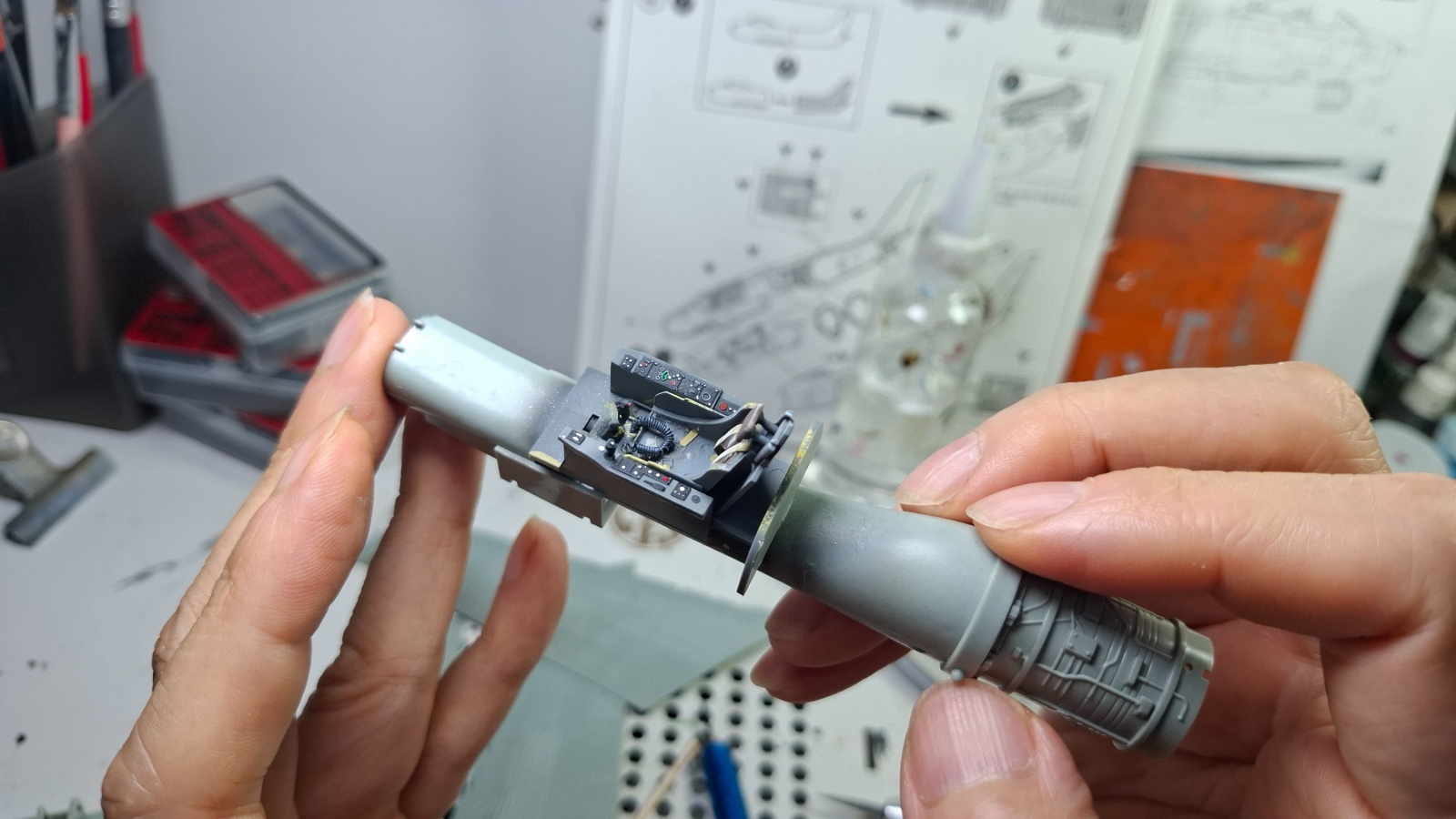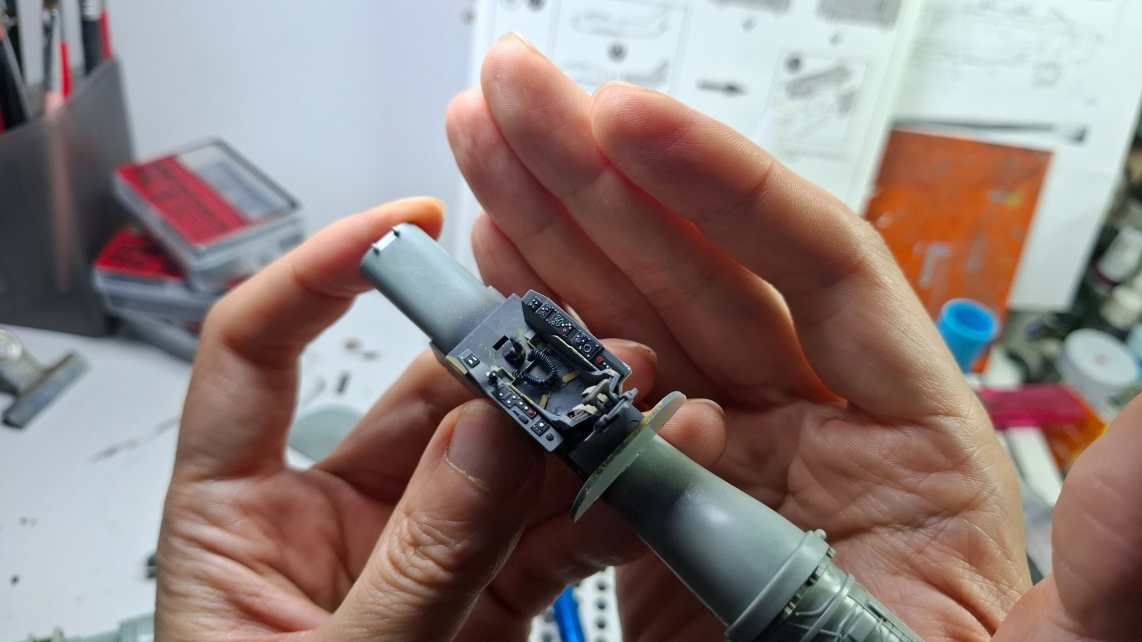 콕핏 작업을 했습니다 캐노피를 닫을 생각이라 간단하게 시트벨트 정도만 만들어 넣었어요