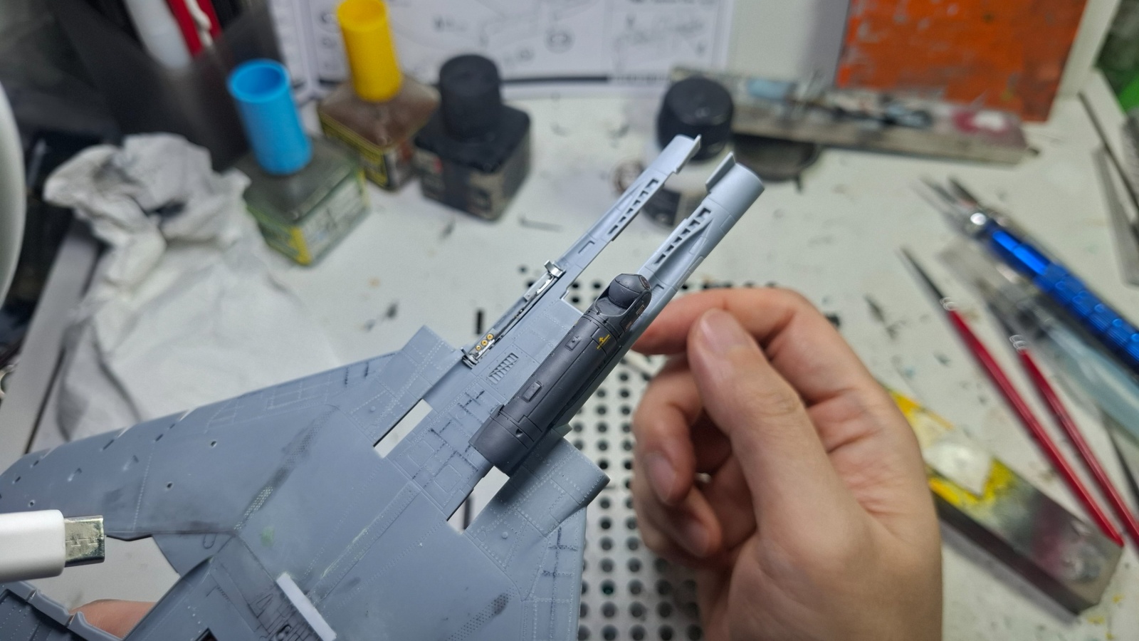 조형촌의 F-4E후기형은 동사의 F-4G와 금형을 공유하는지라 하면의 활모양 보강판이 붙은 형식을 재현하고 있는데 이 금형 한벌을 다시 파지 않는이상 다른형식의 E형 발매는 시간이 좀 걸릴 것 같네요 F-4E AUP는 당연히 이 보강판이 없기때문에 제거해야 하고 실기에서는 보강판에 가려져있는 리벳과 패널라인도 다시 새겨줘야 합니다