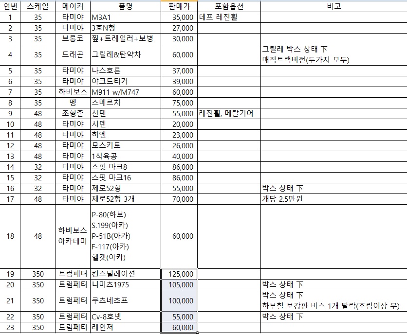 3. 트럼페터 항모는 너무 큰 관계로 서울시내 직거래/선입금을 전제로 하며, 상호 협의하에 제가 직접 가져다 드리겠습니다.