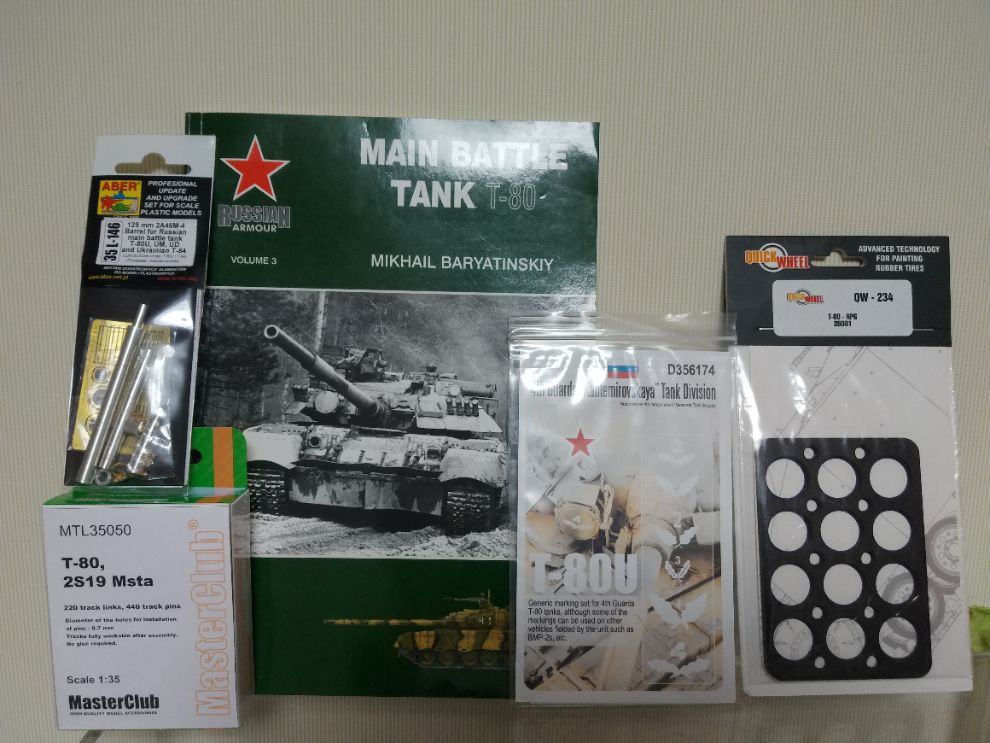 사진에서 보이는 바와 같이 T-80 자료집 외 별매품들, 데칼, Quick wheel (for RPG model 1/35 T-80U)를 세트로 분양합니다~ 모두 새제품이나 T-80 자료집은 ebay에서 구한 깨끗한 중고서적입니다~ 분양가는 편의점 택배비 포함 5만3천원입니다~