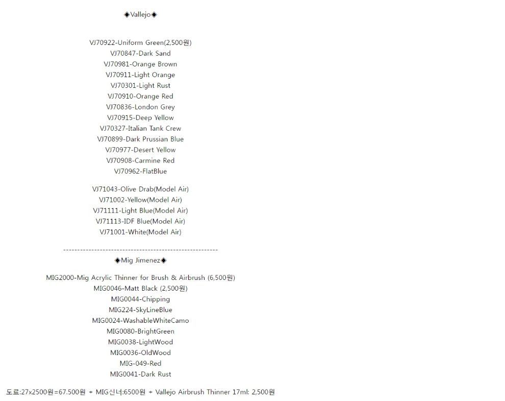 아크릴도료30개(신너포함)+워싱,웨더링재료4개+원하시는 서비스제품+택배비2 000