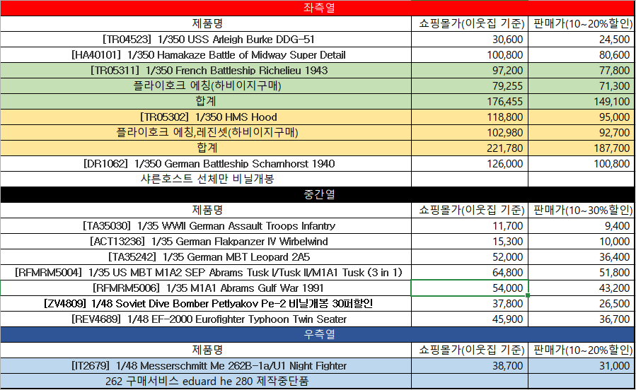 색상이 칠해진 칸은 일괄 구매만 가능합니다.