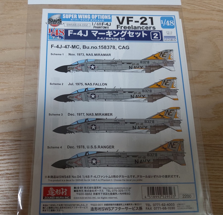 3. 조형촌 1/48 F-4J 팬텀II 별매 데칼 : 1.4만(배송비 별도)