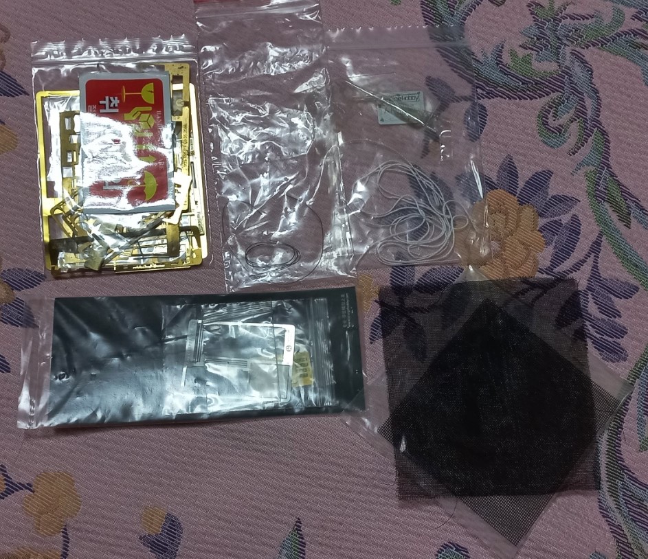3. 에칭 쪼가리와 메쉬, 견인 케이블 표현용 실 등입니다.