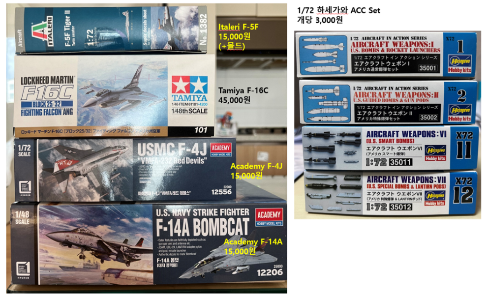 1/72 무장 Acc 입니다. 각 3,000원