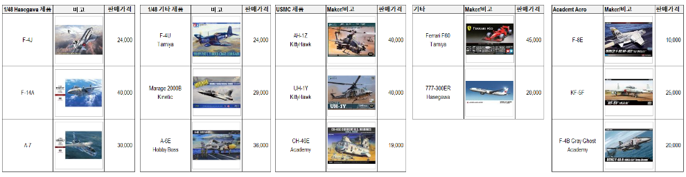 여러 Maker 제품으로 아래 가격표 보고 선택하시고 쪽지/문자 주세요.