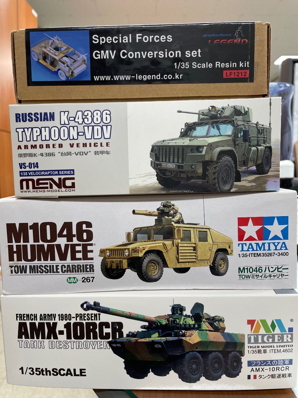 타미야 험비와 레젼드킷은 이곳 장터에서 구입하였고, 나머지 2개는 새상품 입니다.