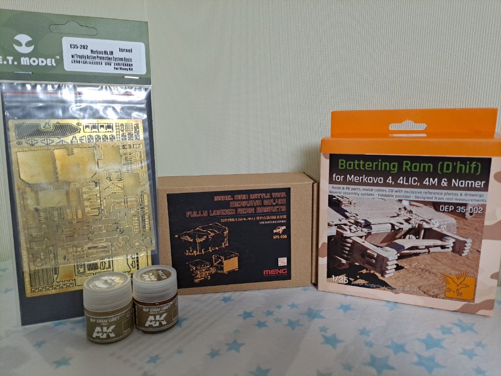 사진에서 보이는 바와 같이 Merkava mk4 에칭세트, battering Ram, fully lored rear basket, Ak real color를 묶음으로 분양합니다~