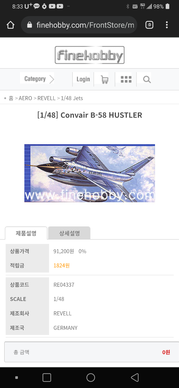 (반값에드려요)[1/48] Convair B-58 HUSTLER