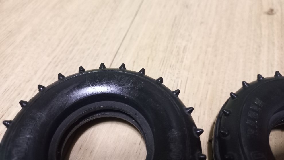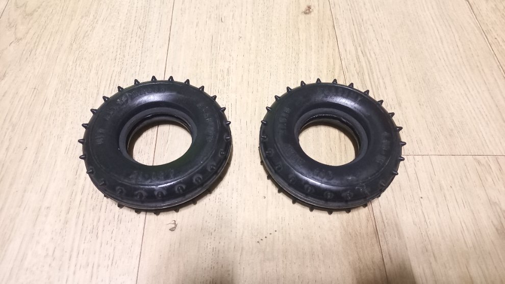 아카데미 갤럭시버기 후기형 전륜 타이어 미사용 신품이며 갤럭시버기 전기형 신품 전륜 타이어와 교환 원합니다.(타미야제X)