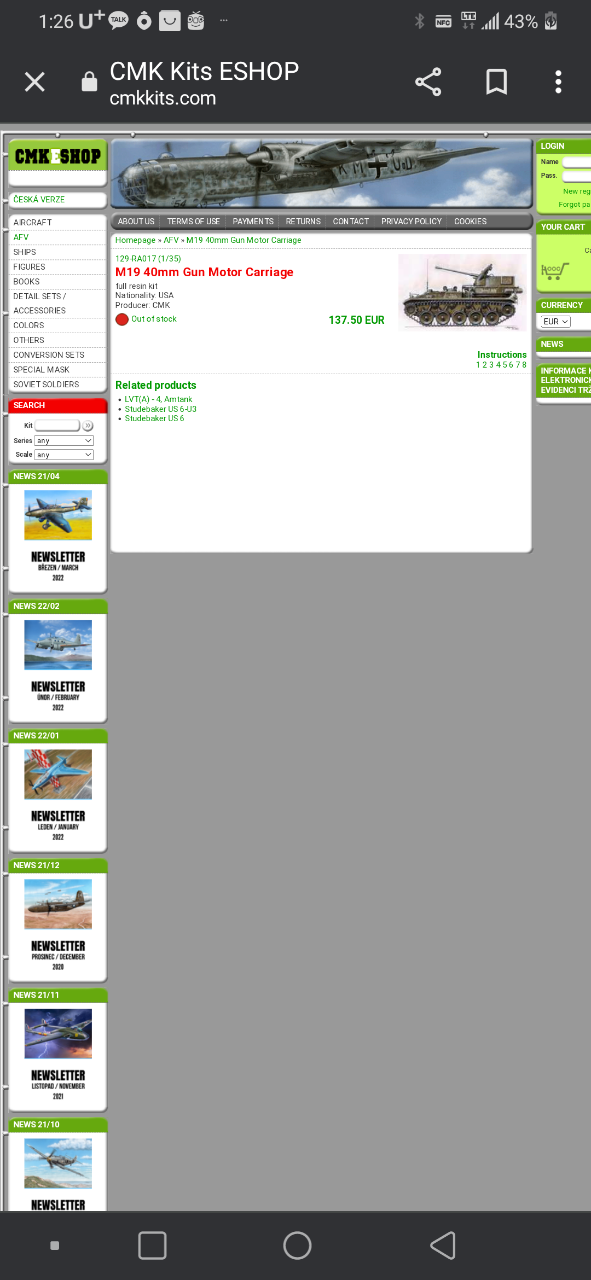 (반값에드려요)1/35 레진 m-19 40mm gun motor carriage