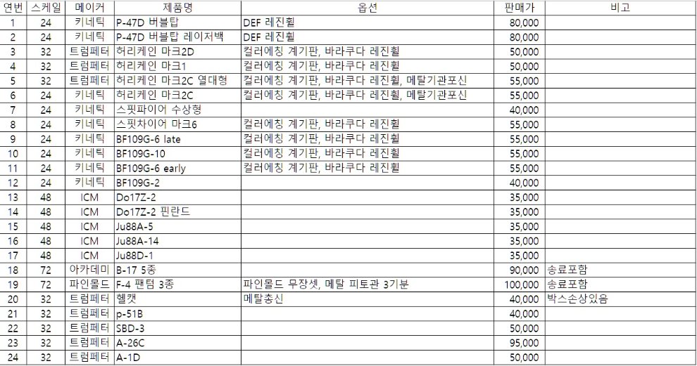 3,4,5,6 1/24 허리케인 4종,