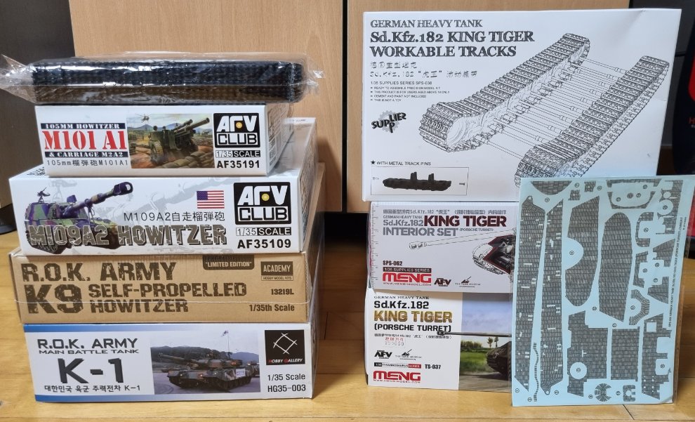 AFV클럽 35191 1/35 M101A1 + AFV클럽 1/35 105mm 포탄 세트(포탄세트는 포장 해체해서 별도의 지퍼백에 담아둔 상태)