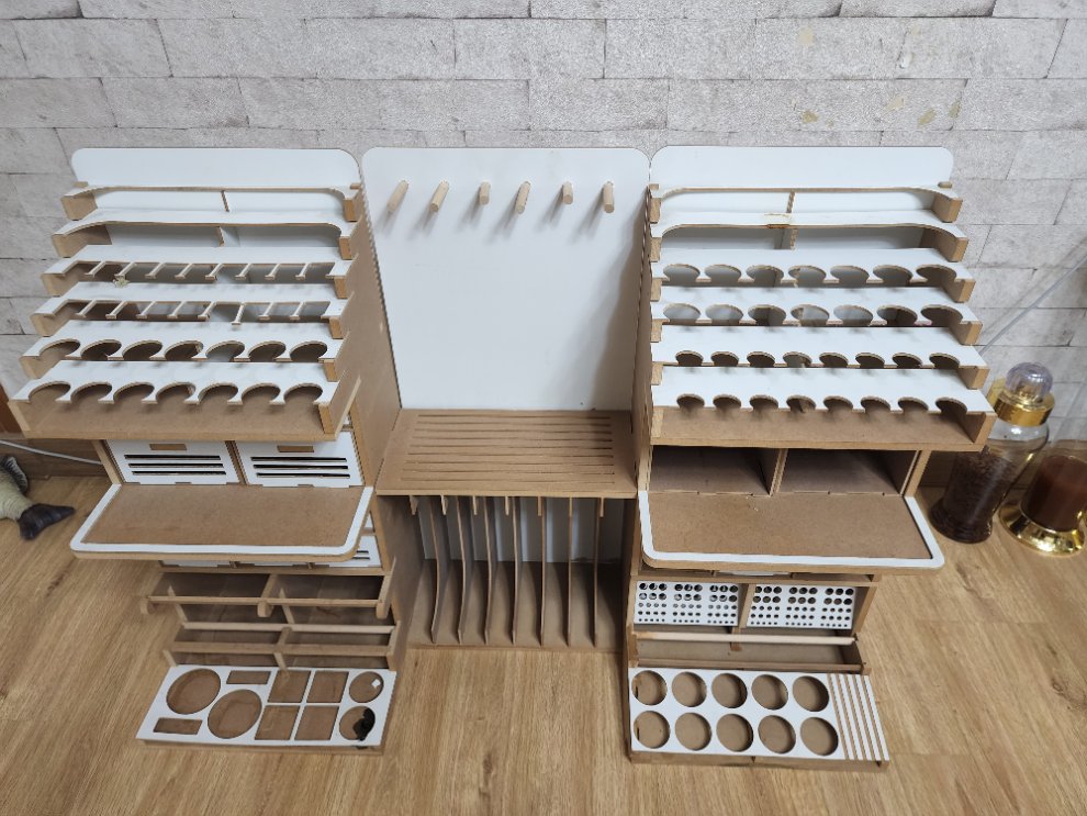 실제 사용한제품이구요. 서랍들 몇개는 전면판이 없습니다. 실제 수납공간 상당하구요. 프라모델을 조금더 깔끔하게 제작하실수 있습니다.