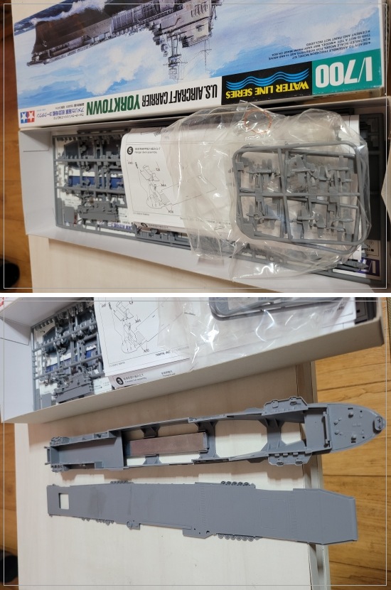 요크타운의 경우 제가 중간에 제작하다 시간이 없어 일부 조립된 상태입니다. 설명서는 당연히 동봉되어 있고, 빠진 부품이나 런너도 없습니다. 항공기와 함교 같은 경우에는 따로 비닐팩에 담아 두었습니다.