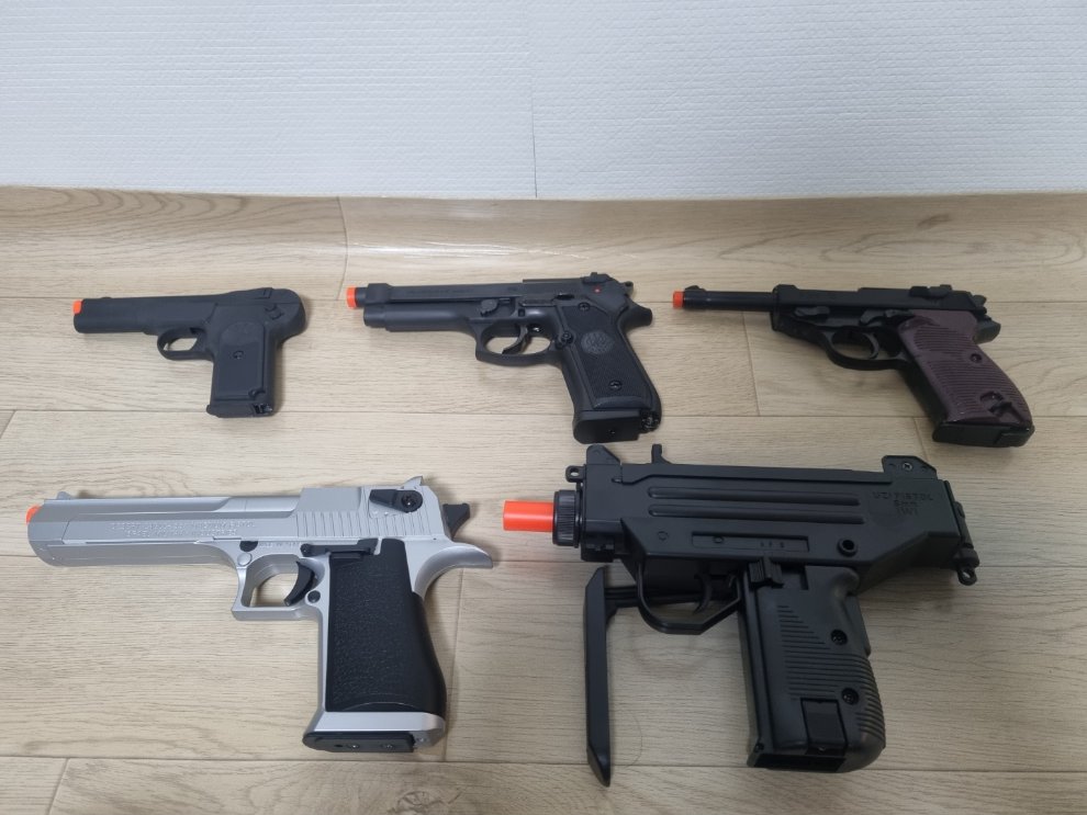 각종 에어코킹건 입니다. 전부 다 비비탄 한발 사격하지 않은 새상품 입니다.