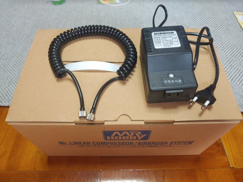 에어레귤레이터가 포함된 최상위 모델이며 110V용이라 변압기와 에어호스 같이 드립니다.