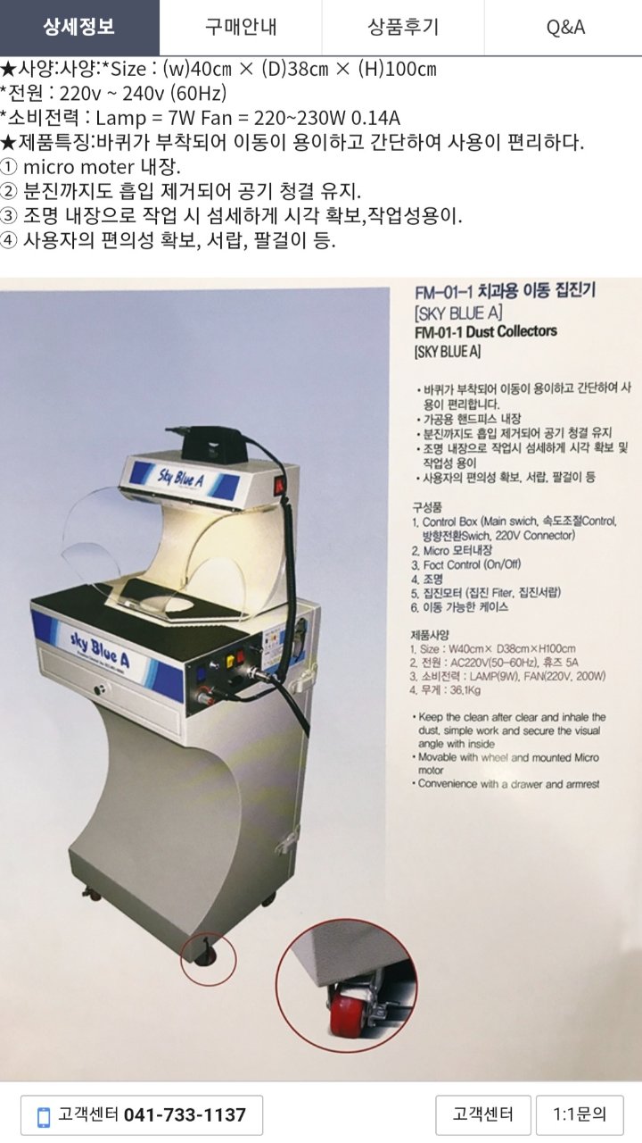 집진기능, 마이크로 모터(핸드피스), 라이트 기능 있는 1인용 작업테이블입니다..