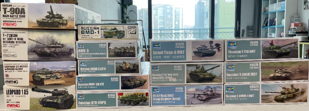 T-90 : 45,000원 / T-72B3M : 55,000원(박스 구겨짐) / MEXAS : 40,000원 / 레오파드1A5 : 4만원