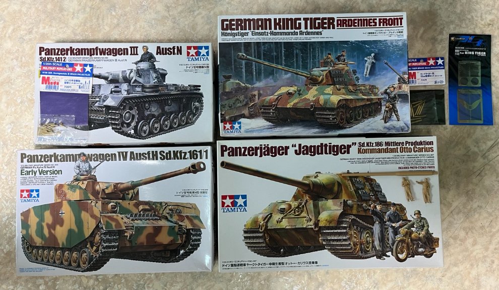 좌측상단 3호전차는 내용물의 비닐만 벗긴 무제작 제품 + 돌격포 포탄세트