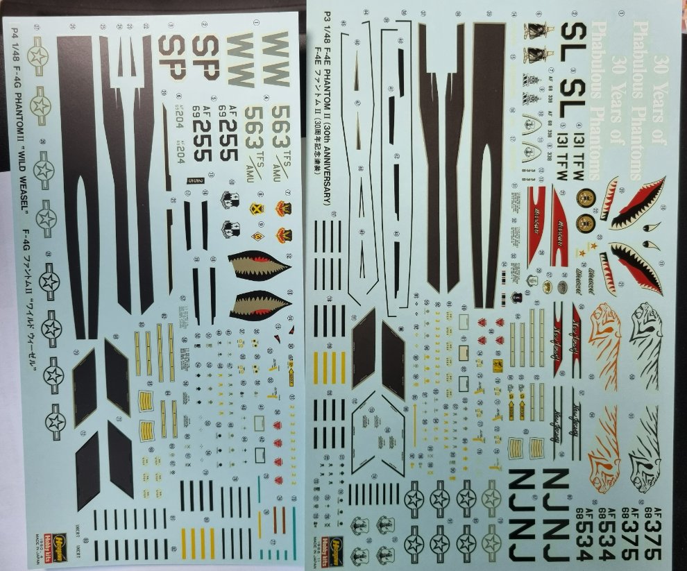 하세가와 F-4E, F-4G : 새제품이나 두개 모두 데칼 황변 부분적으로 보임. (외견상 갈라짐은 없음)