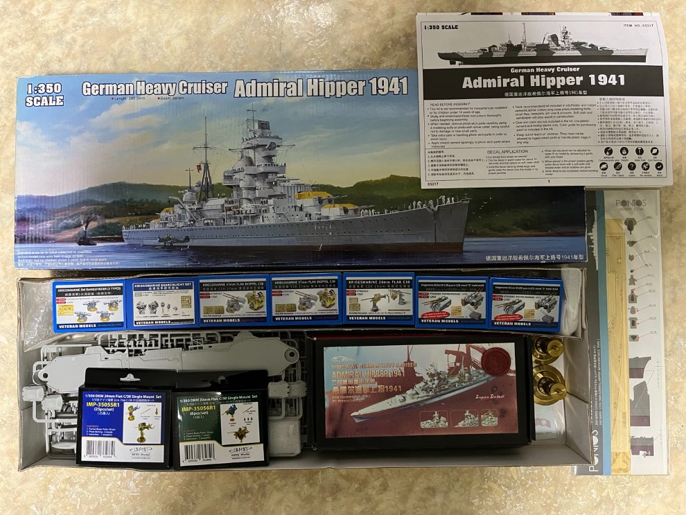트럼페터 1/350 어드미럴 히퍼 1941 + 플라이호크 전용에칭세트 + 폰토스제 황동상가대(Type50)