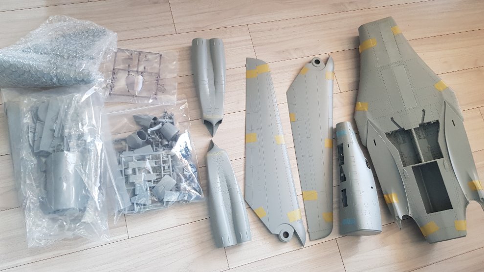 큰부품들은 부착되어 있고, 특히 폭탄 개폐창이 부착되어 있어서 열린상태 만드시려면 좀 손이 많이 갈 수 있습니다.