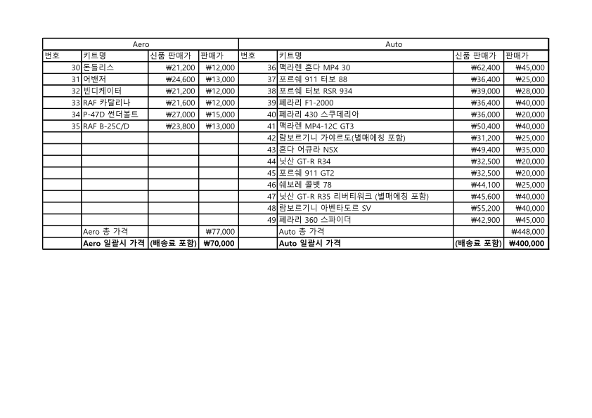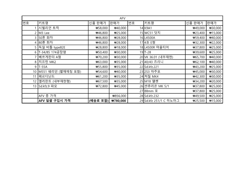 (현재 AFV 일괄판매 완료이며 AERO 일괄판매 완료입니다. 오토류만 구입 가능하십니다.)