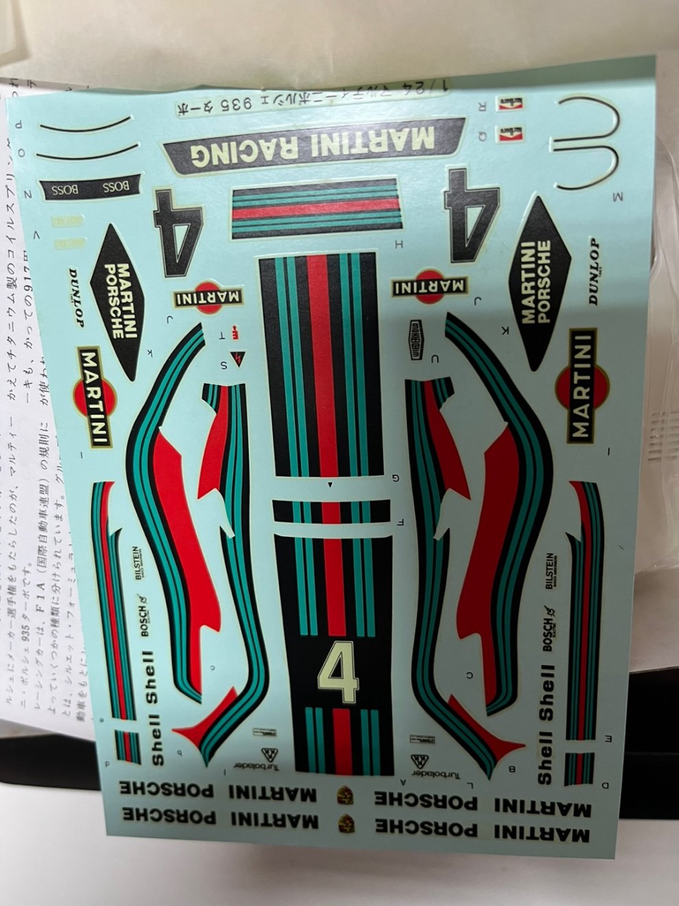 2> 타미야 1/24 마티니 포르쉐 935 터보. 맨아래 데칼사진참조. --> 5.0